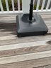 Here is a very nice quality, patio umbrella, in turquoise fabric. Very good condition very colorful. The pole is made of metal. The base has rollers in his movable overall very good condition. ready to.