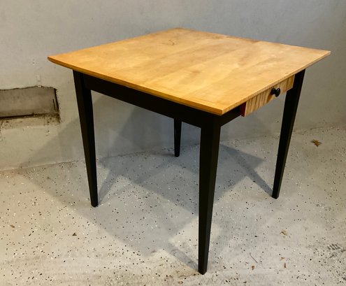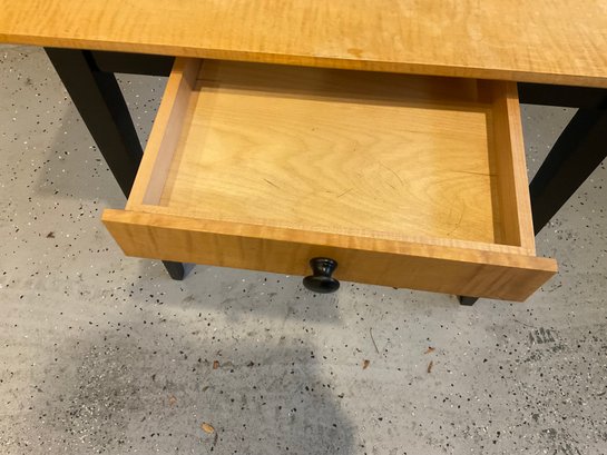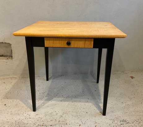 Here we have a very well-made tiger maple table with a drawer, that is perfect for a card table/game table or is a censor table and would be great for puzzles. It’s made of tiger maple and has a good contemporary feel. Excellent craftsmanship.