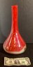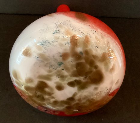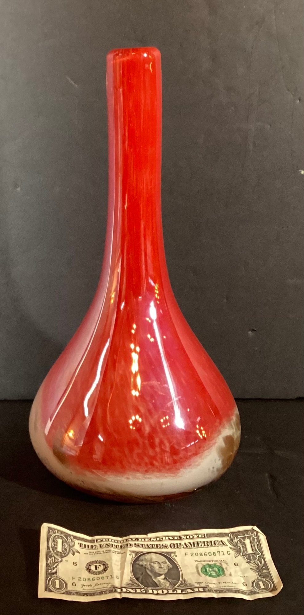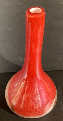 This is a very substantial vase that has been artfully created with a white glass interior gold glass swirled at the base with cherry red glass as the basis of the vase.