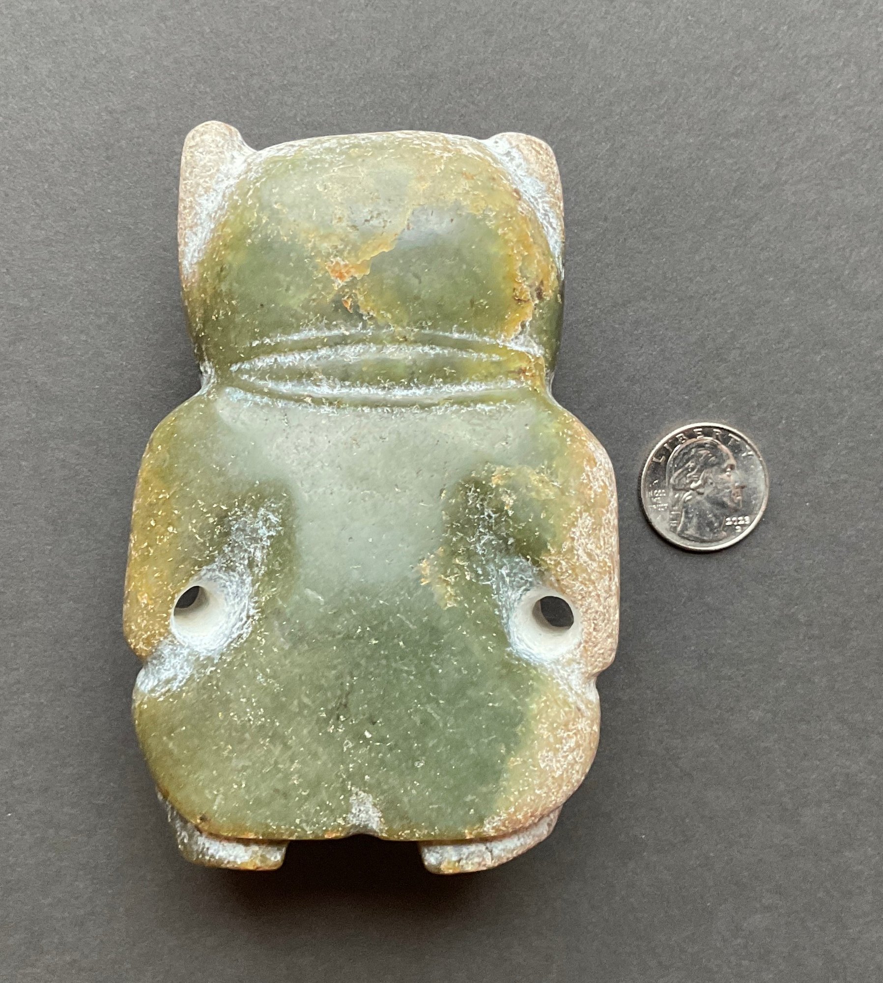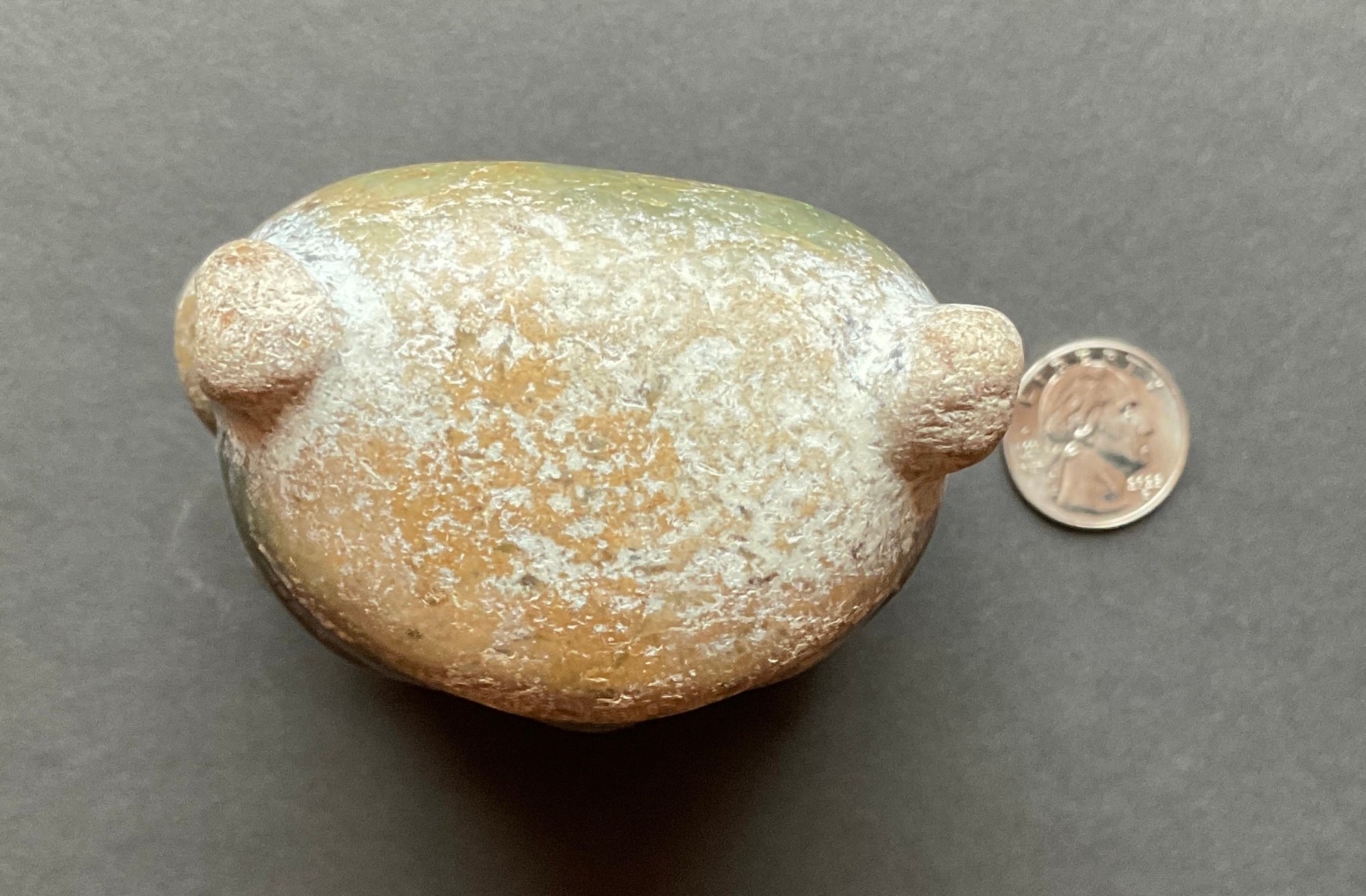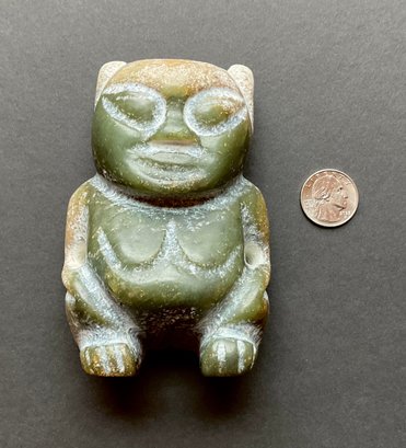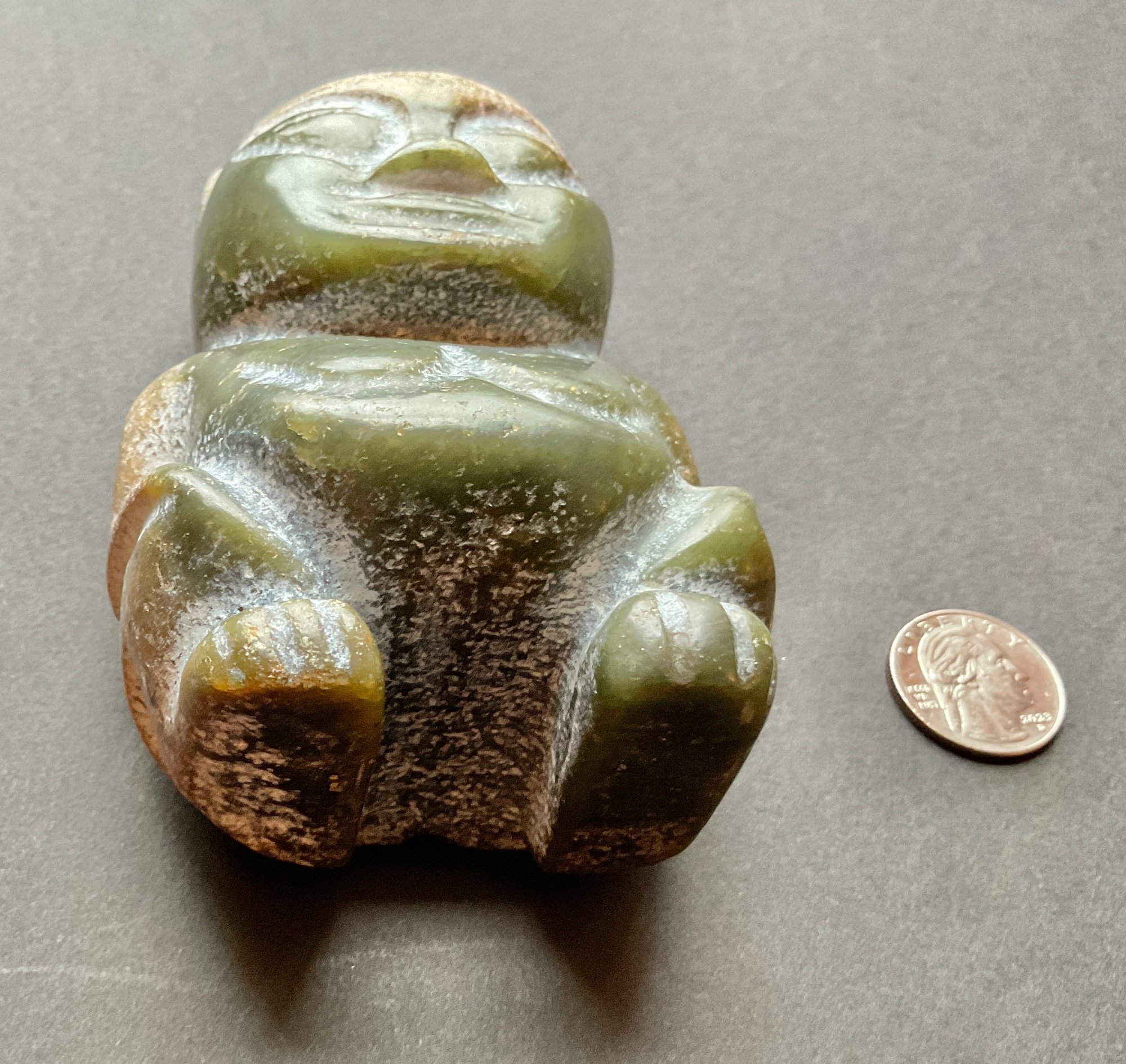 This Chinese carving is very interesting Not quite sure what this is made of it looks to be a form of Jade. Itβs very dense and very heavy. very crudely done.. and very smooth to the touch