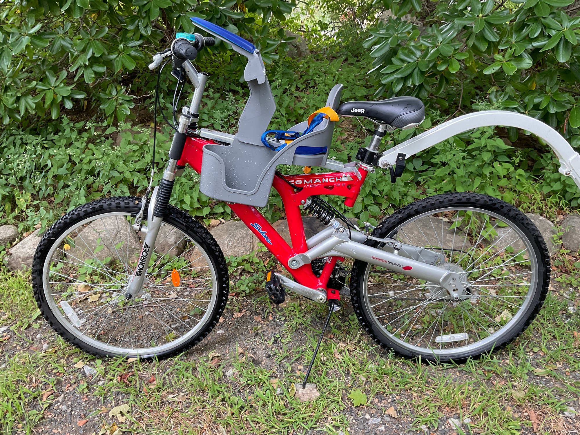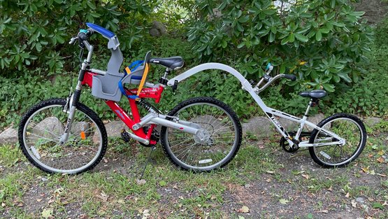 You can carry two kids with this bike. Everything is in good working order and ready to use. Age appropriate signs of use. 27” wheels.