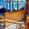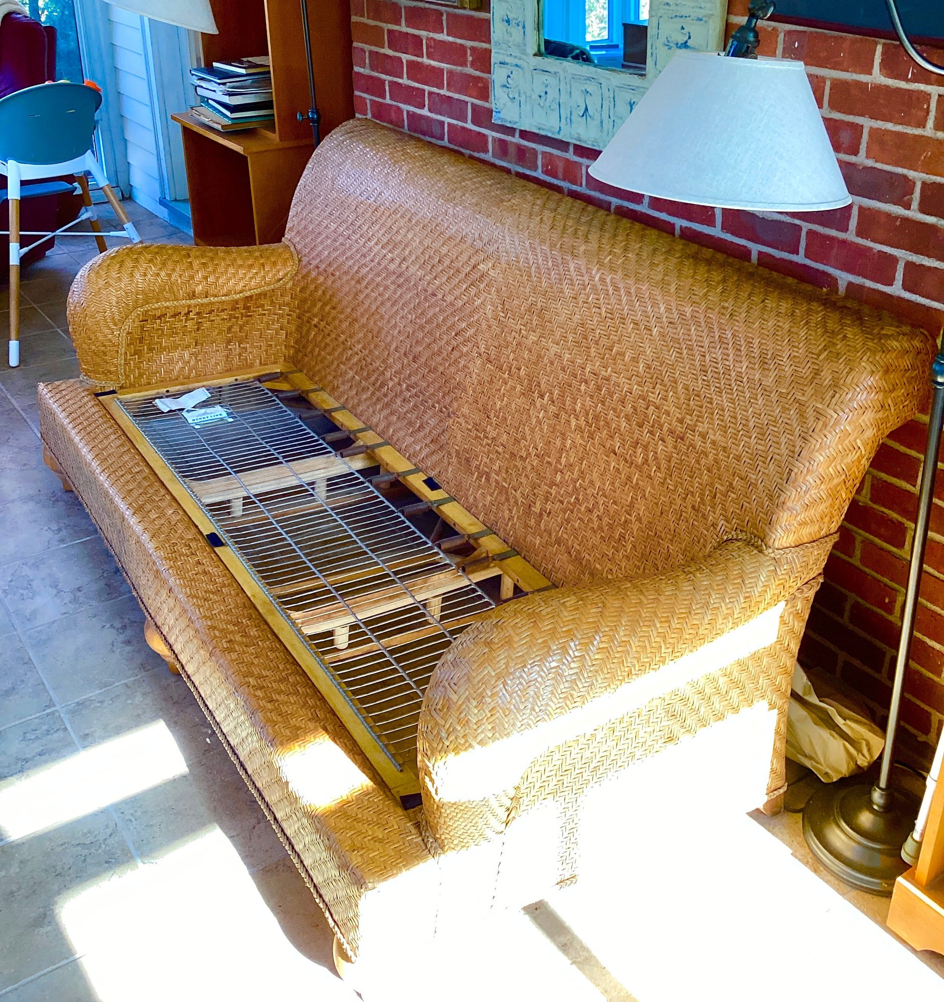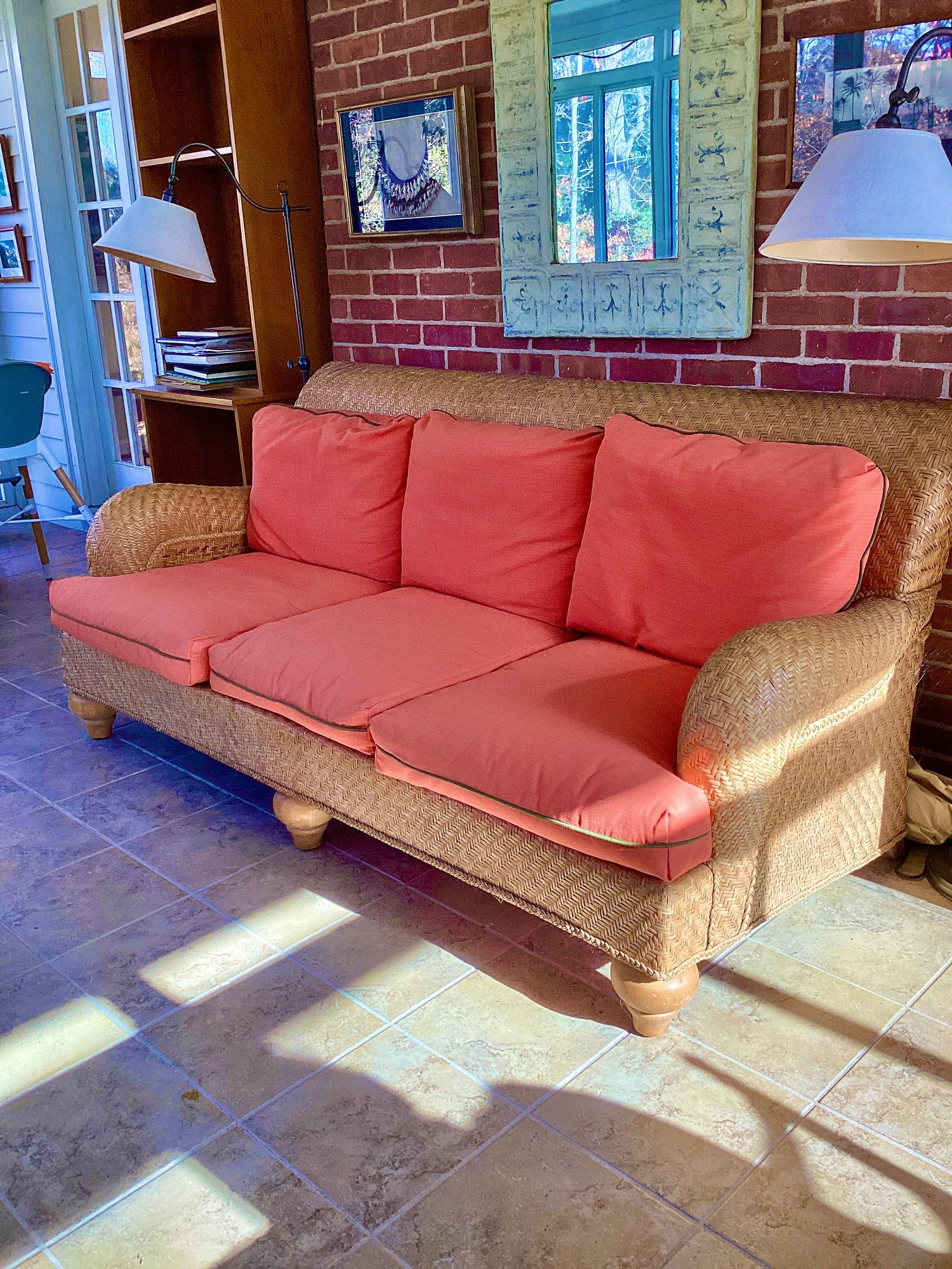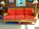 We are selling this very nice handcrafted sofa labeled by the manufacturer Henry link. Sofa has three cushions that are in very good condition. The sofa itself is in very good condition. Very stately and solid ready to use.