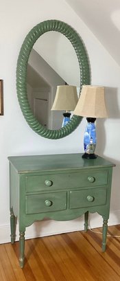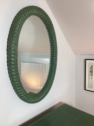 A very pleasing green finish and a substantial mirror frame. Nautical theme.