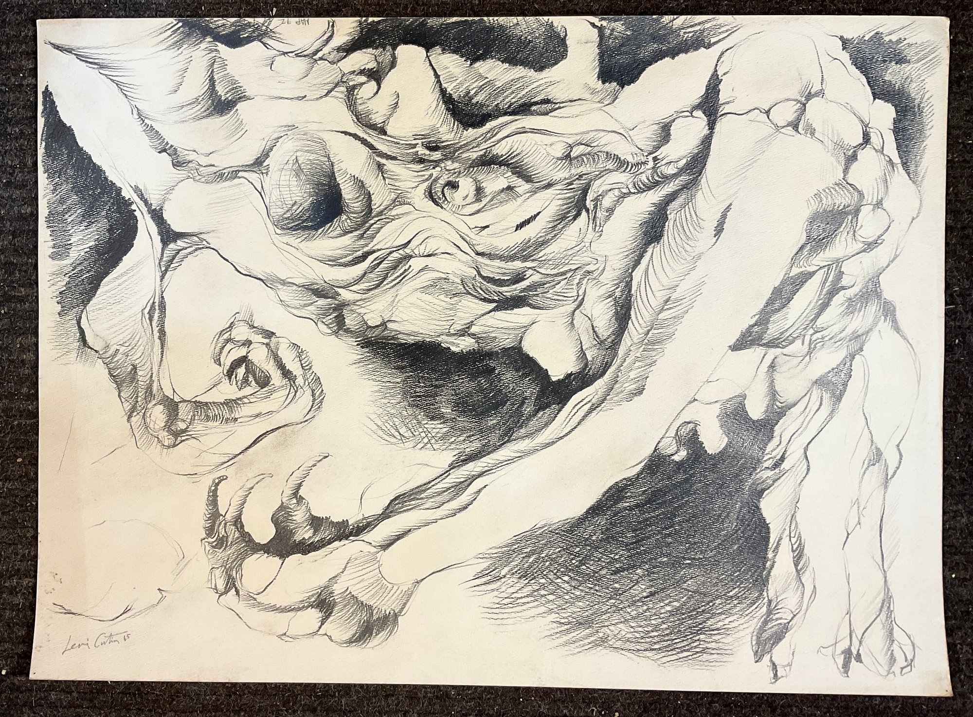 Here is a very interesting drawing, signed by the artist Levi Curtin and dated 65 ( 1956 ).