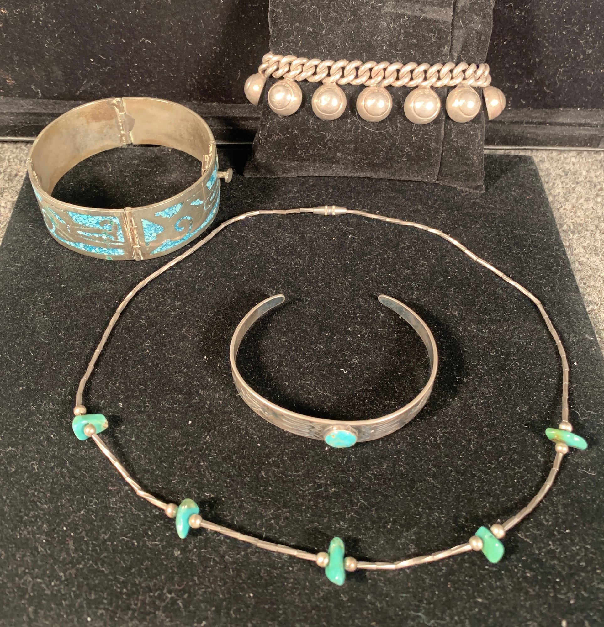 Most all are marked Taxco and or Mexico 925. All pieces are in good wearable condition. The link style bracelet is marked by the silversmith in Taxco who made it. And is very heavy and solid.