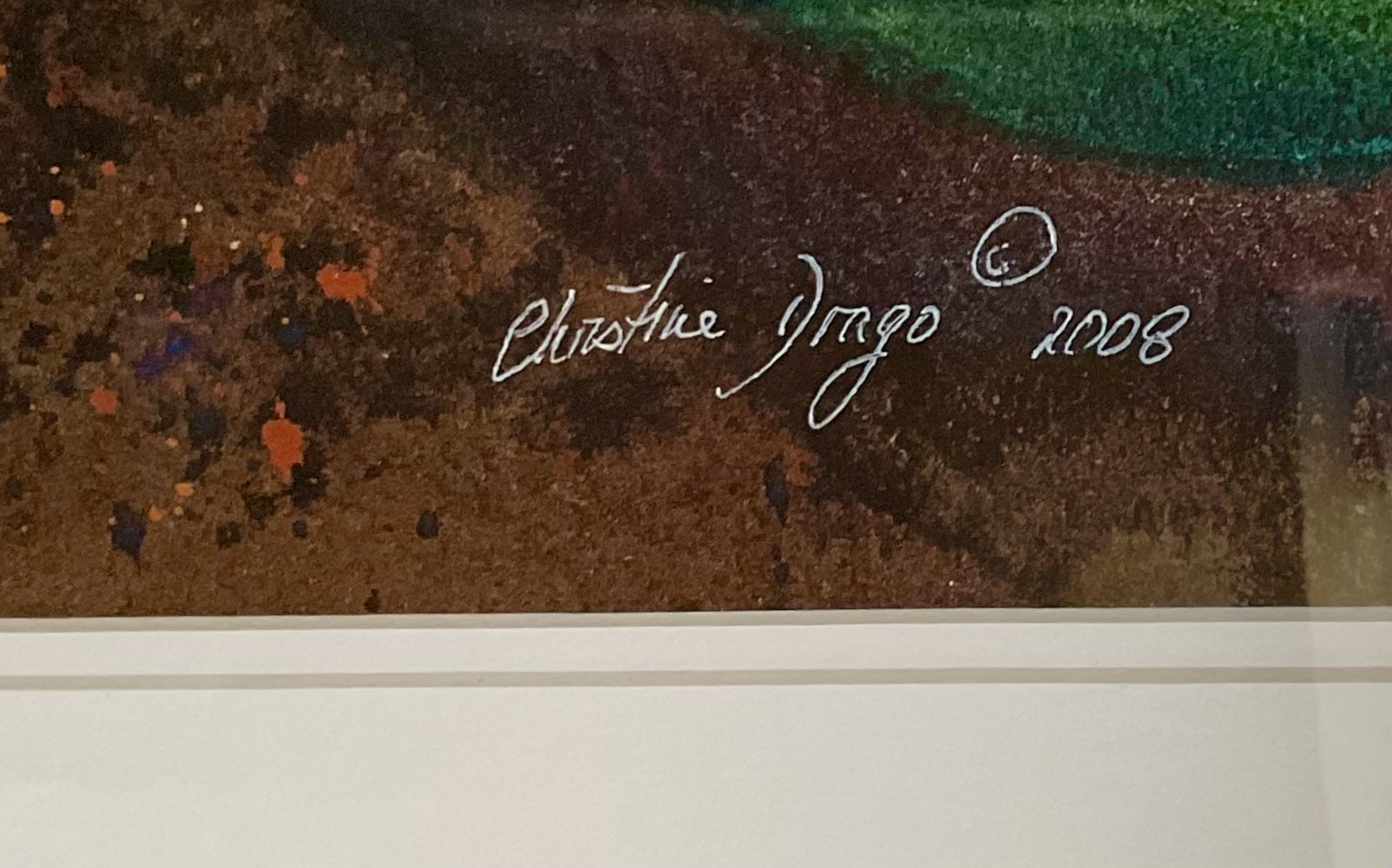 This is a nice large print by Christie Drago. Very colorful mat and very nicely framed very nicely ready to hang in a contemporary frame.