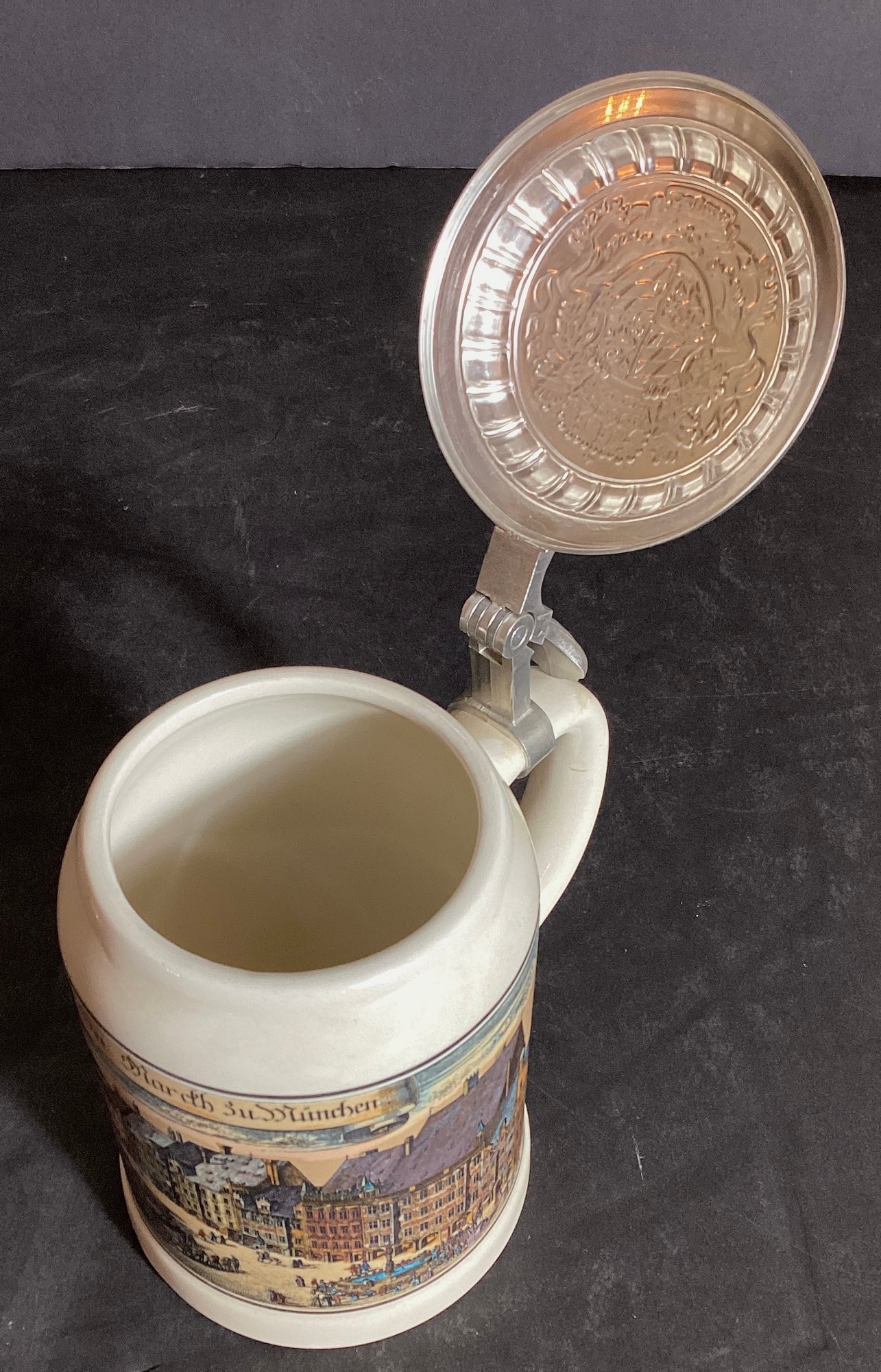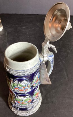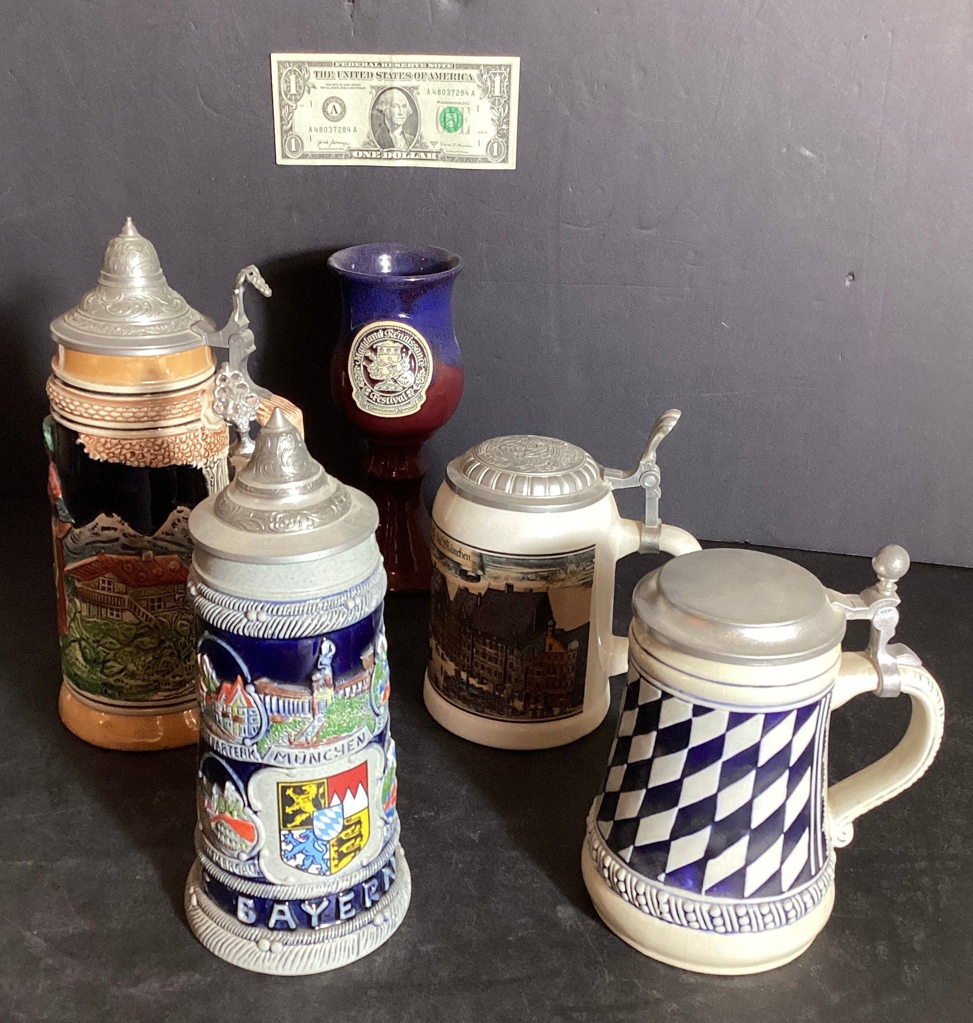 Authentic German beer steins dating from the last century. Some with pewter lids.