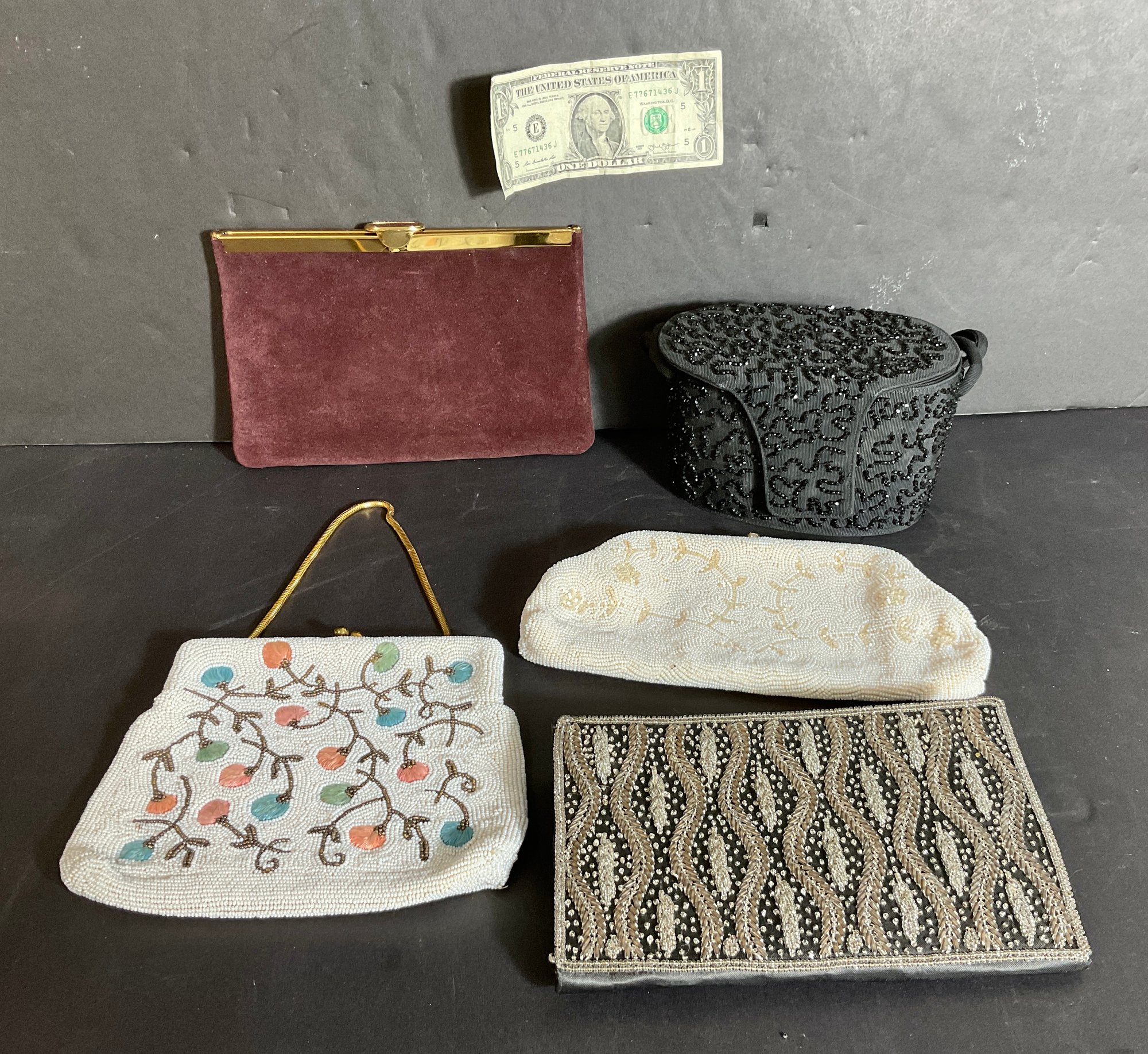 This is a wonderful selection of vintage ladies purses all in good condition no beads missing no stitching coming apart. Everything seems to be in very good condition. The suede hand bag is very nice and contemporary looking, Most of them have labels.