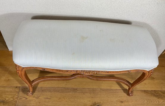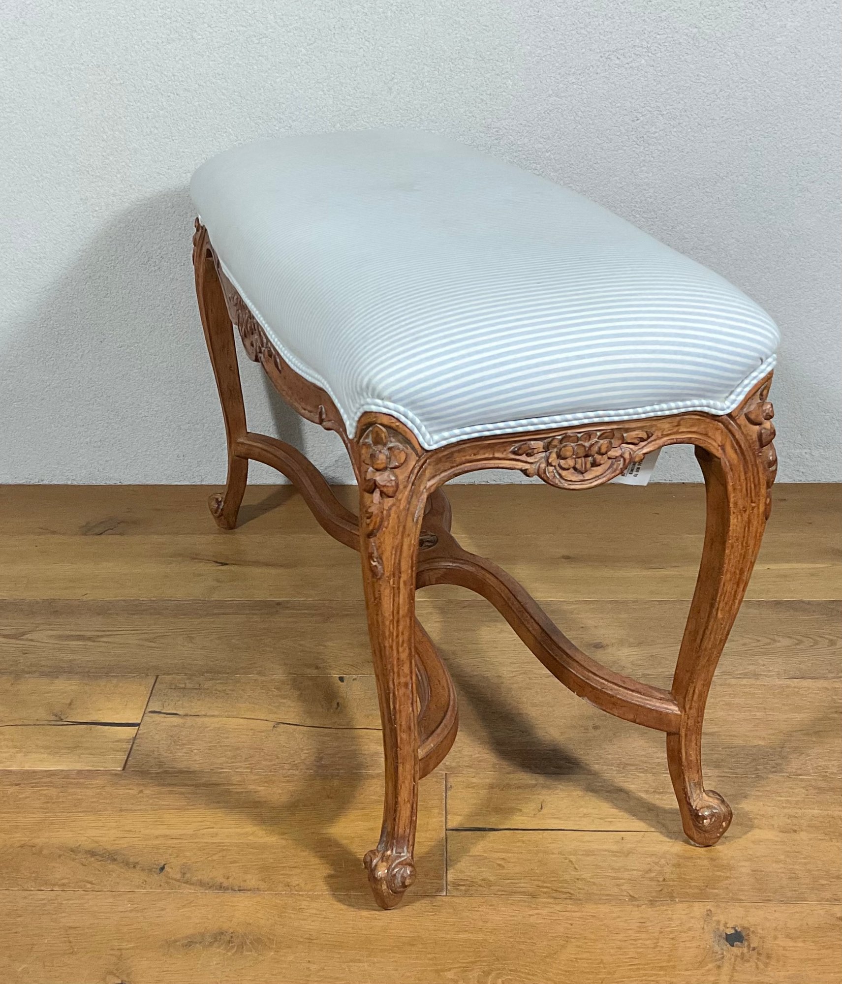 This is a very nicely made French style bench. Great for the end of a bed or as a pull up seat in your living room.