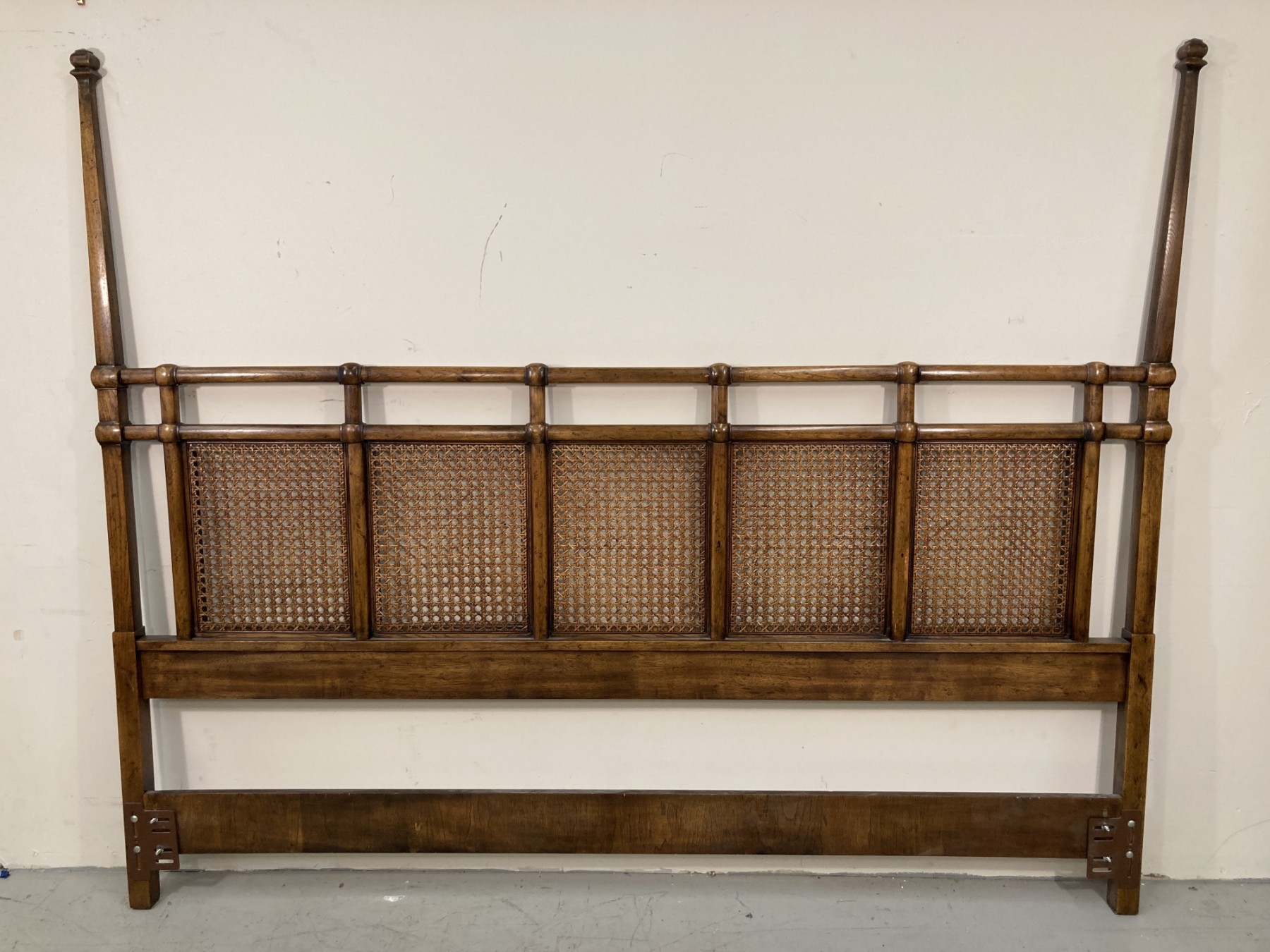 Selling a mid-century modern Drexel accolade line pecan king size headboard with a 5 panel caned back. Circa 1970s. No footboard or rails.
