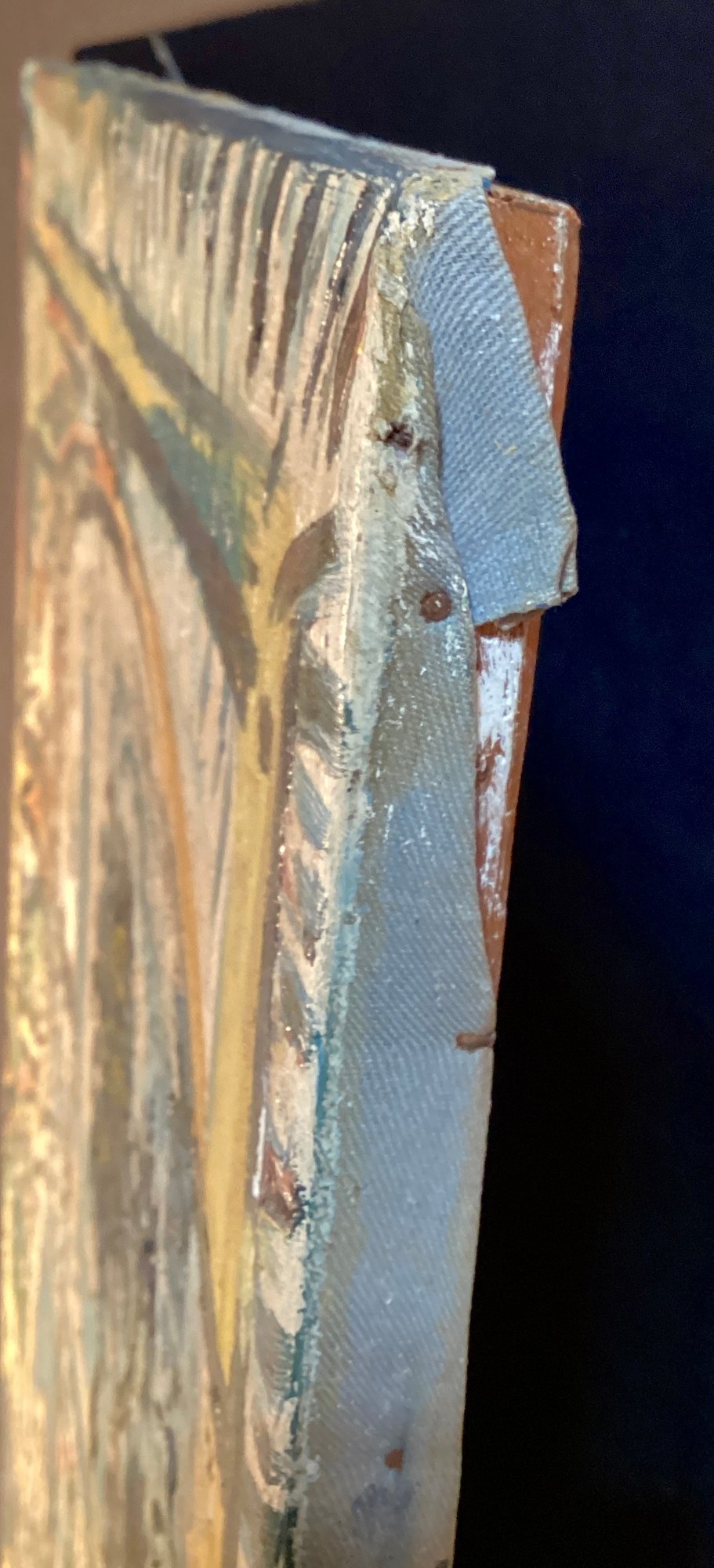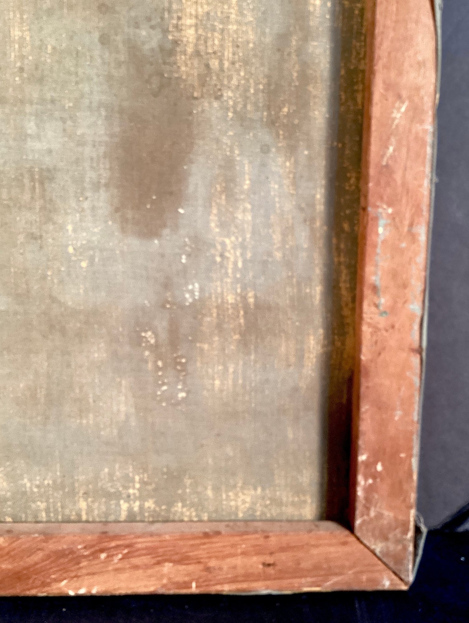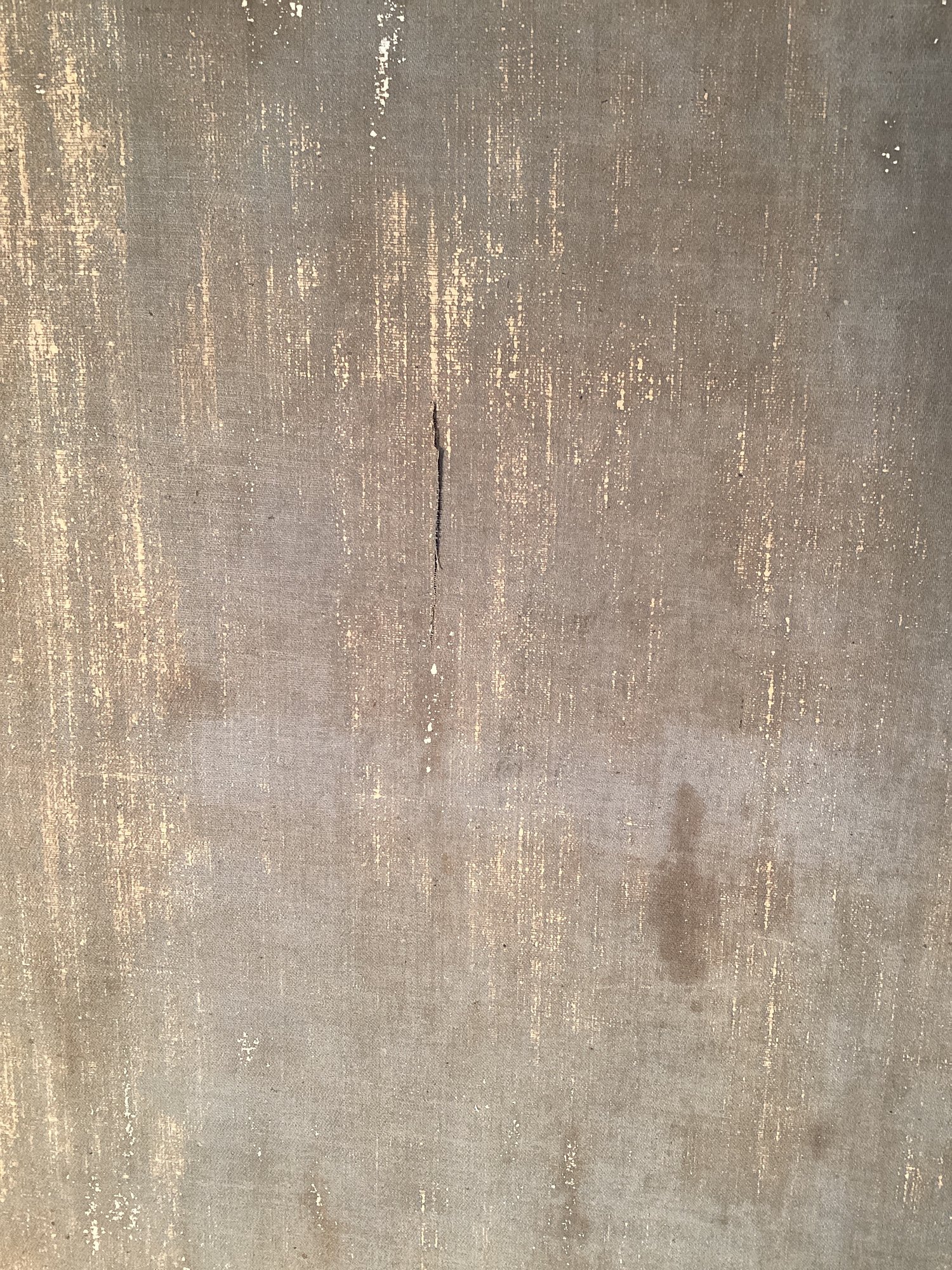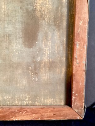 * small 3” tear on center of painting, please see photographs. Canvas and painting need a good cleaning.