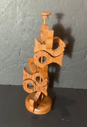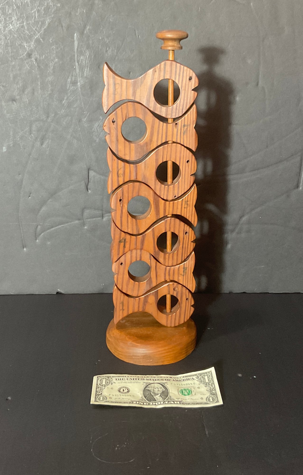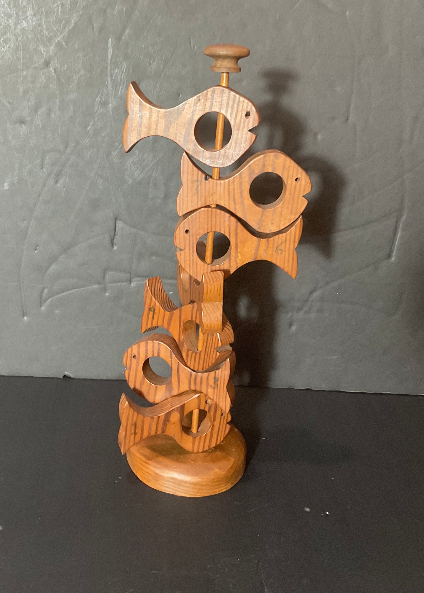 Interesting seven individual fish all with the ability to turn in different directions stain wood. a nice piece of contemporary folk art.