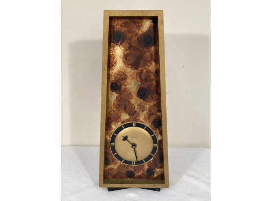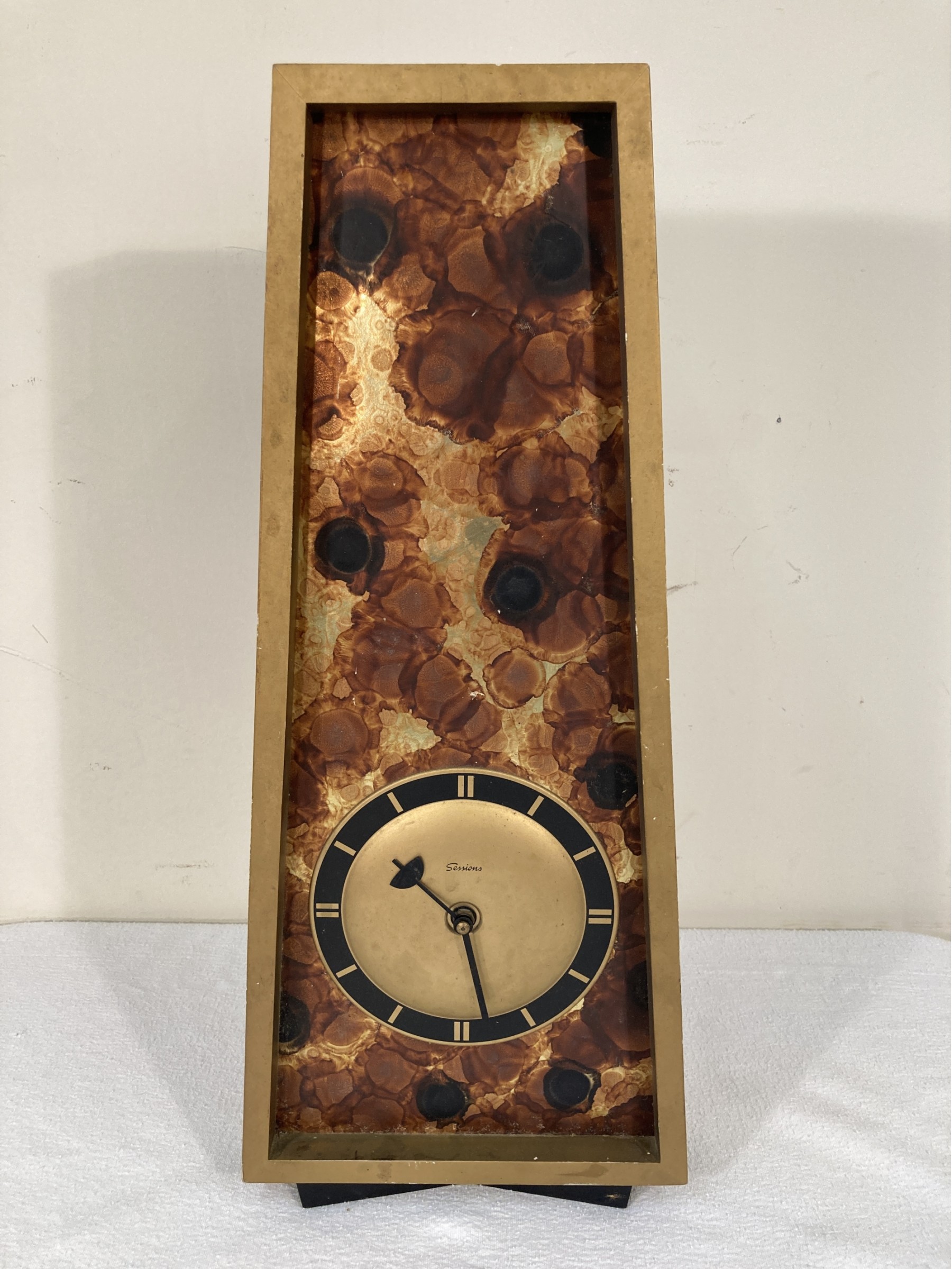 Selling a mid-century Sessions painted mantle clock featuring a gold painted wooden frame with a faux tortoiseshell finish. Clock is untested.