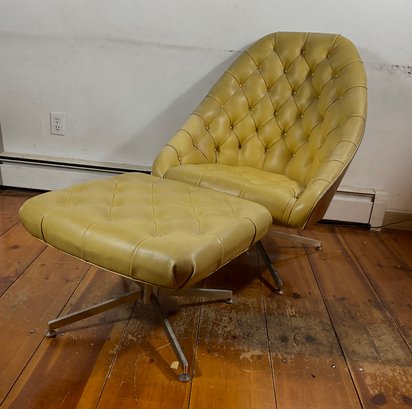 Milo Baughman for Thayer Coggin. a very rare chair with the original leather upholstery . there is some veneer damage in the back see pictures. The structure of the chair & ottoman are not compromised very sturdy and very usable.