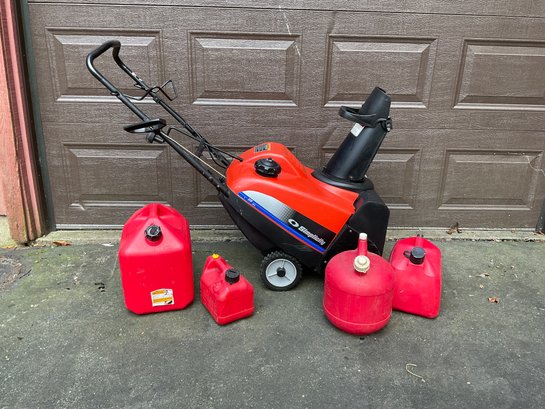 Runs very well. Fully tested. Battery starter to pull cord. Good clean machine.This lot contains 4 good gas cans