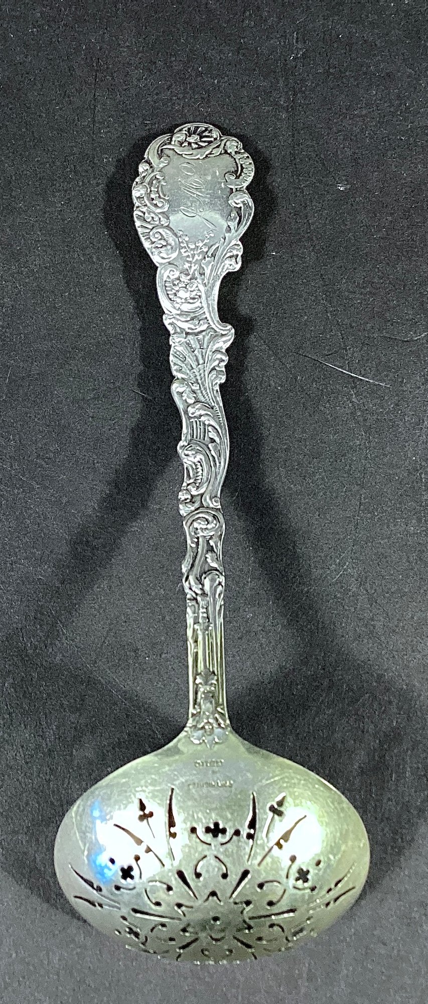 Monogram on back of handle and bowl shows a copyright sterling mark.