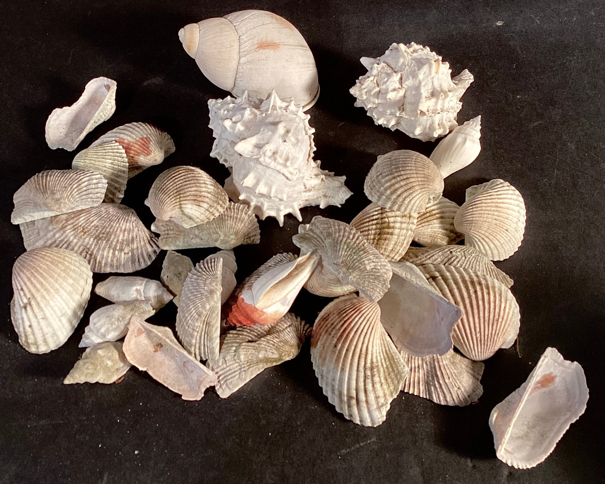 , and has an accompanying group of natural shells (36 shells of various sizes/shapes).