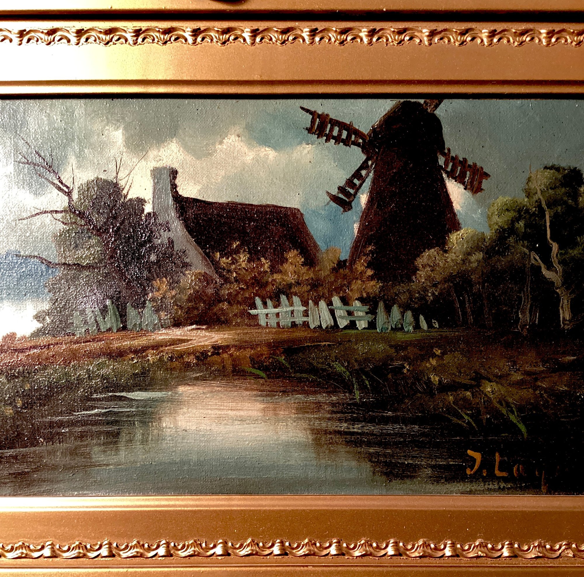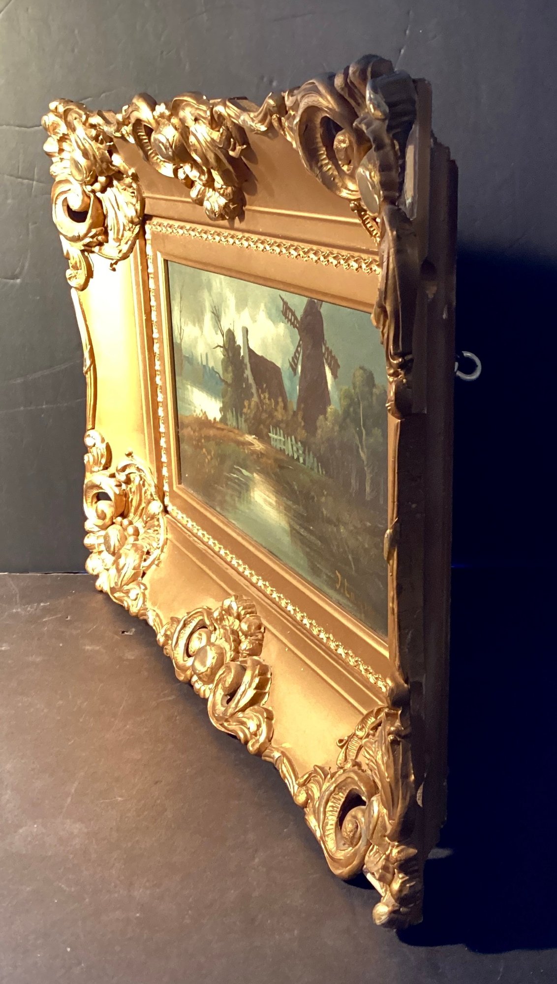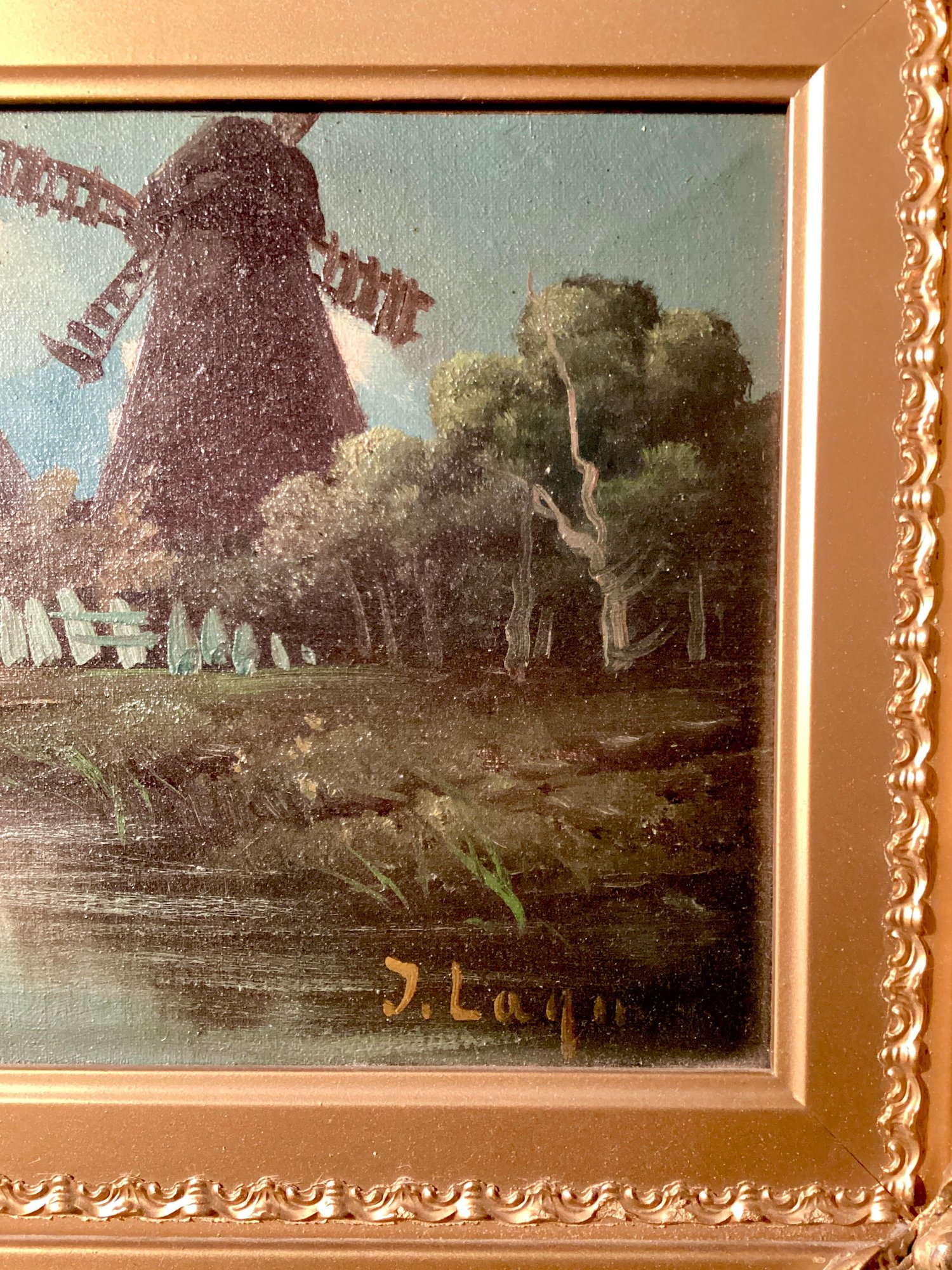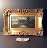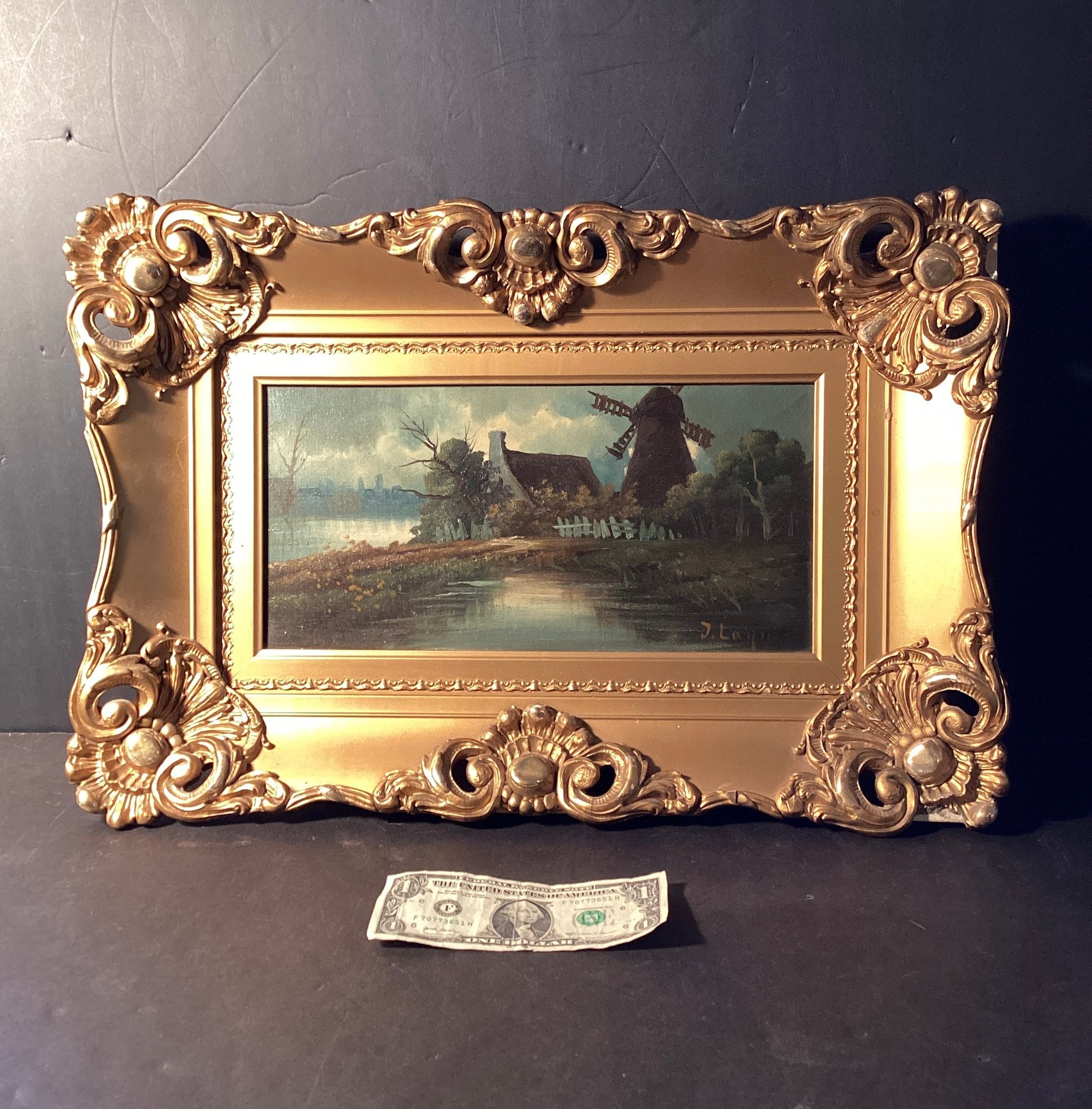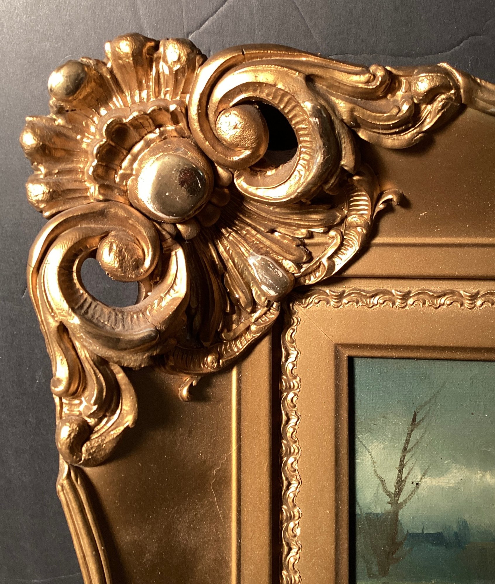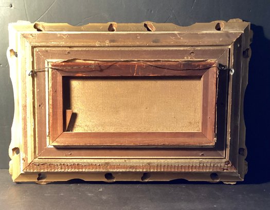Antique oil on linen original painting with an antique wood and gesso gilded frame.