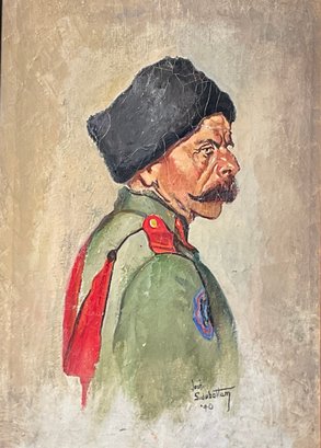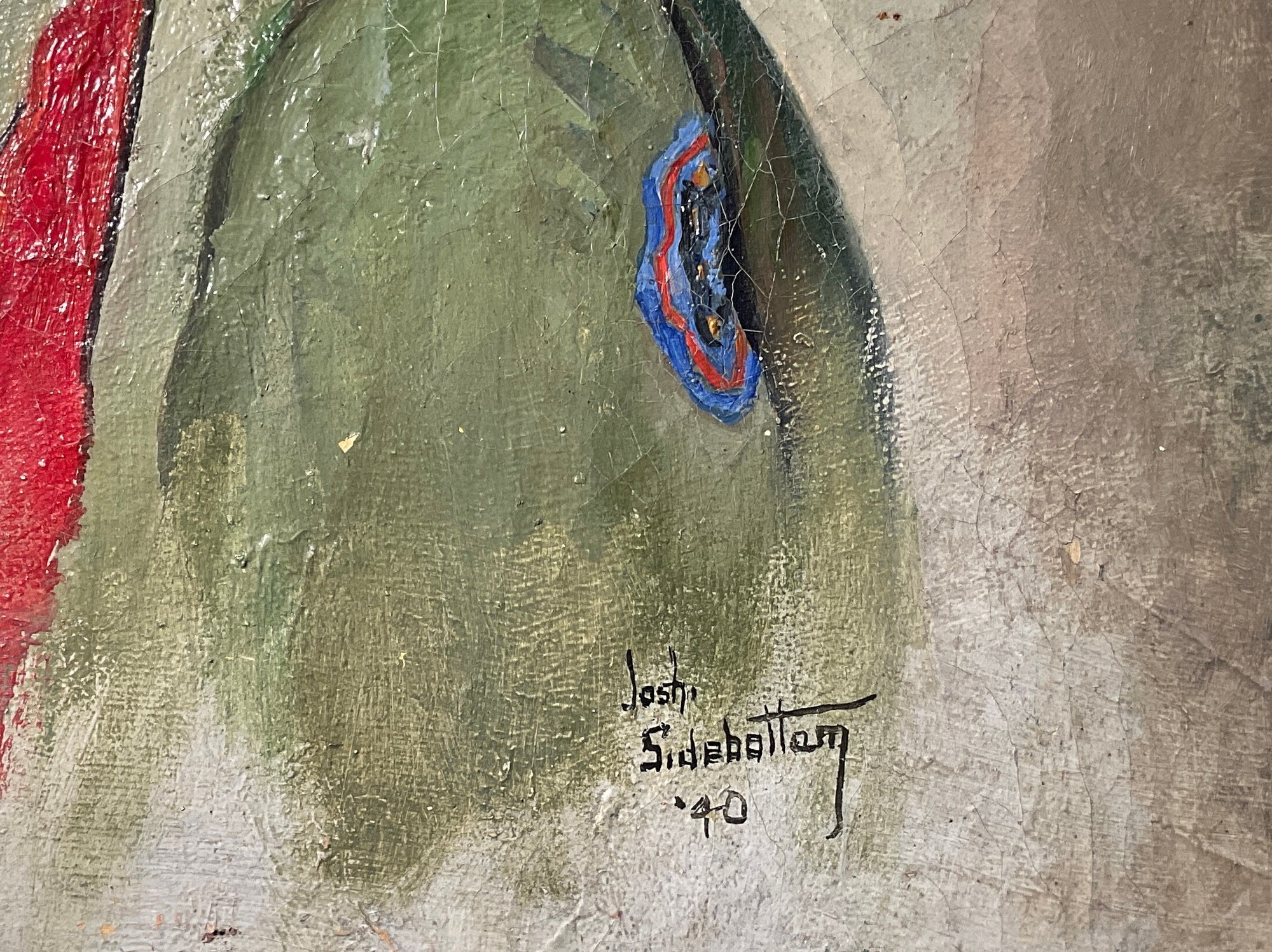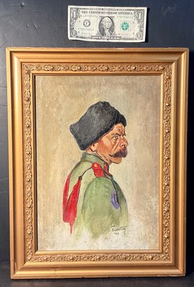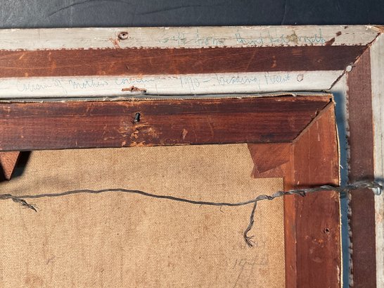 Framed in a nice old frame. Probably not original. The oil painting is in very good condition. Canvas is not torn or repaired. overall good condition.