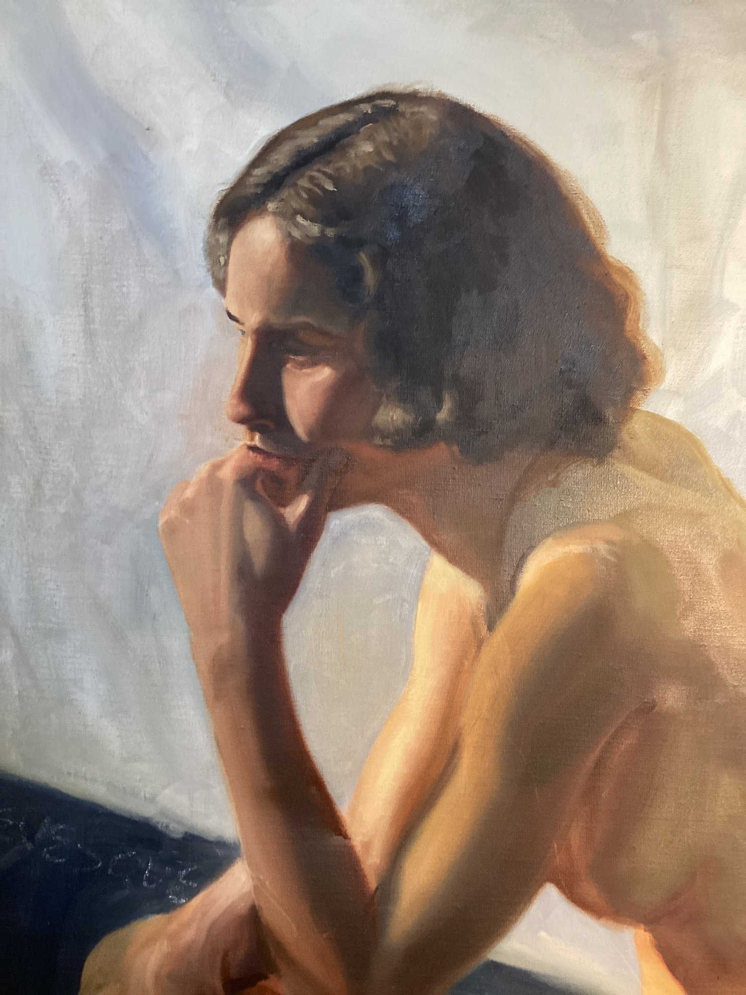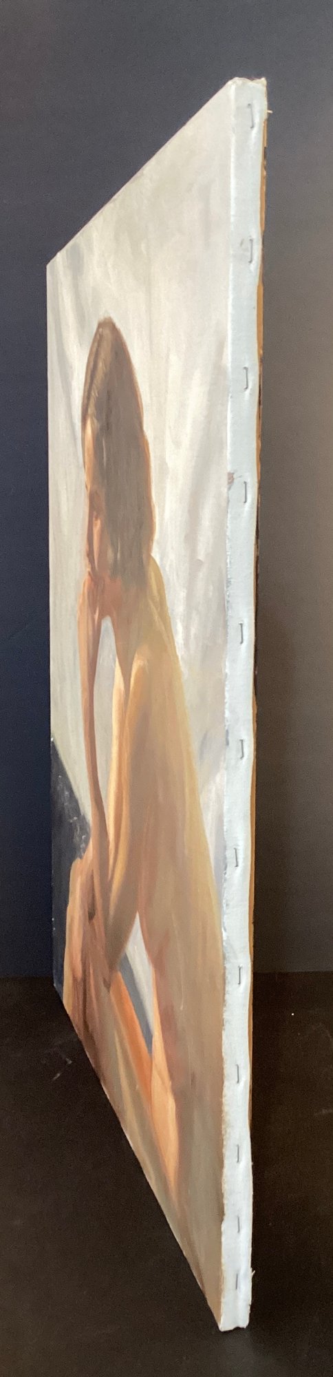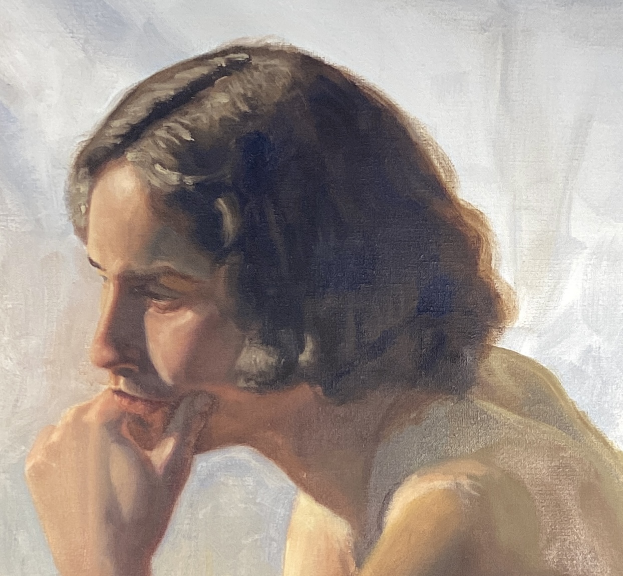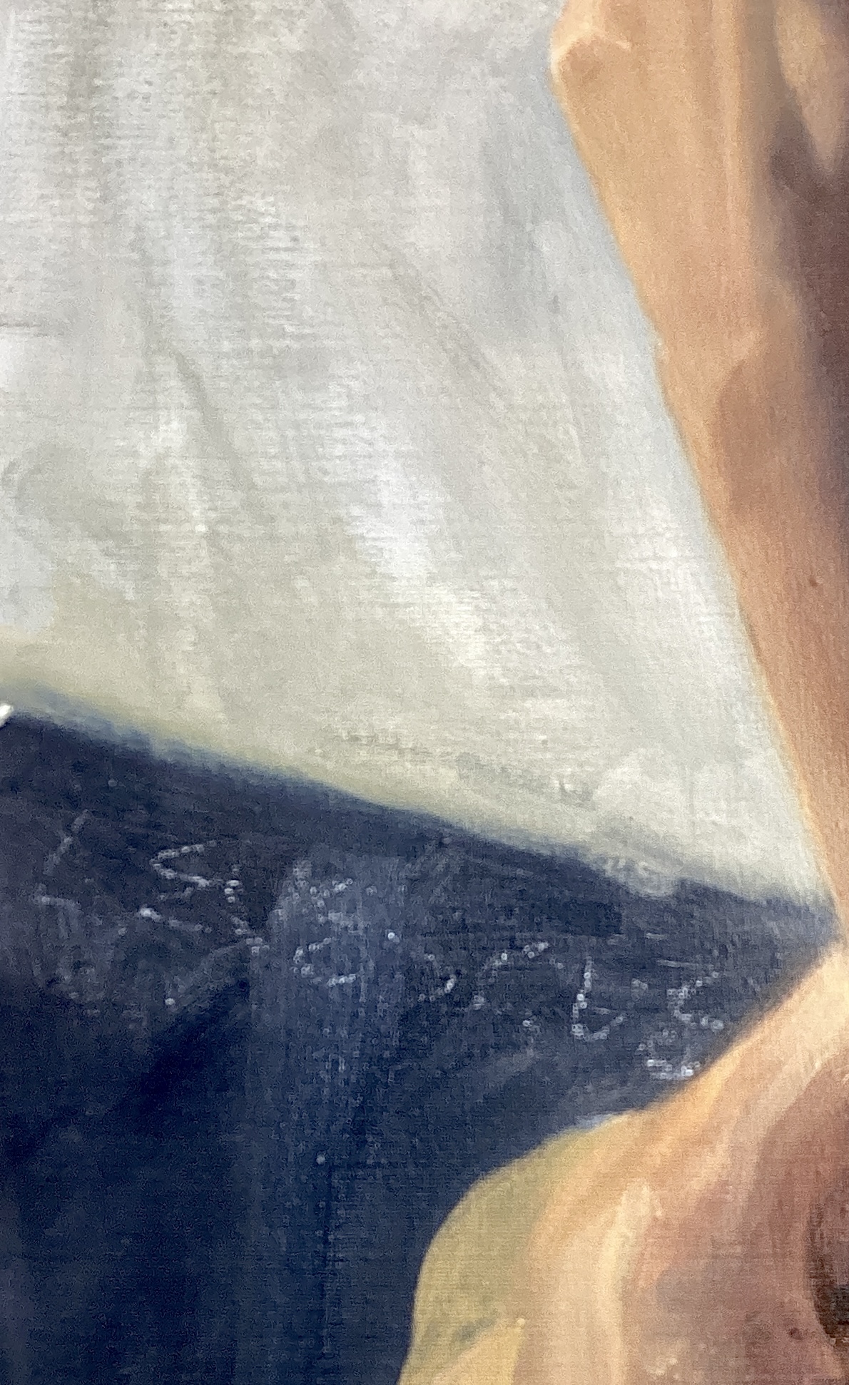 The painting has been rendered in shades of pale blue, whites, and flesh tone.