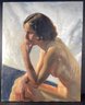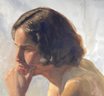 This art piece is exceptionally well done, and has the artist name, written near the subjects wrist.