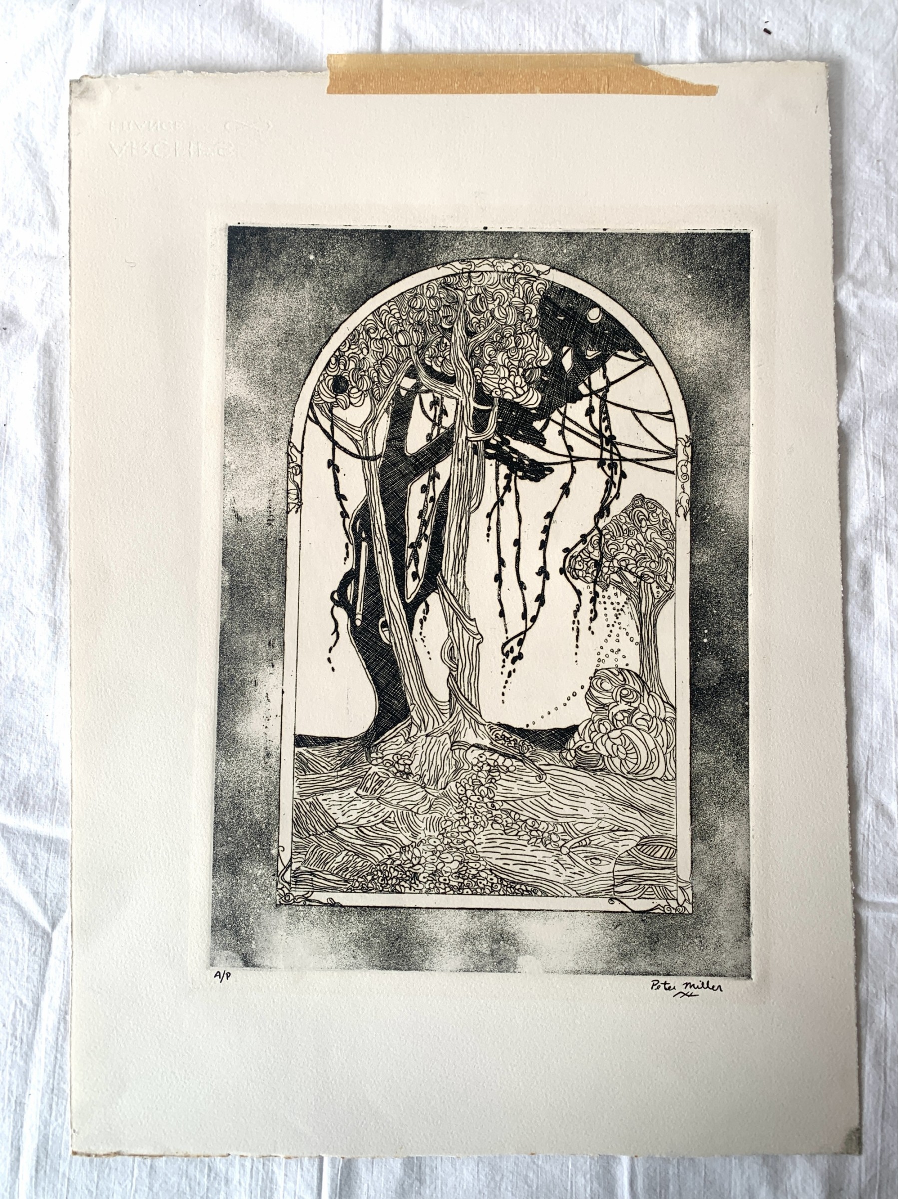 Great quality mid century etching unframed paper. Artist Proof and signed. Ready to frame and hang. Very good quality.