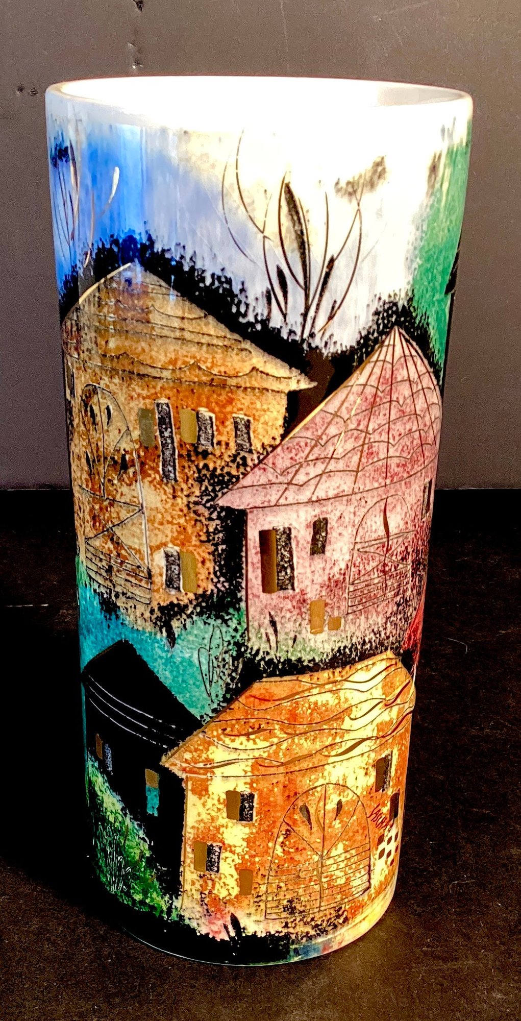 Here we have a extremely attractive vase in the shape of a tall cylindrical vase by the artist