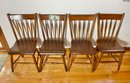 we have a set of 4 New England country arrowback chairs. These chairs are in good condition and comfortable New England circa 1830- 1850. Refinished approximately 30 years ago, ready to use.