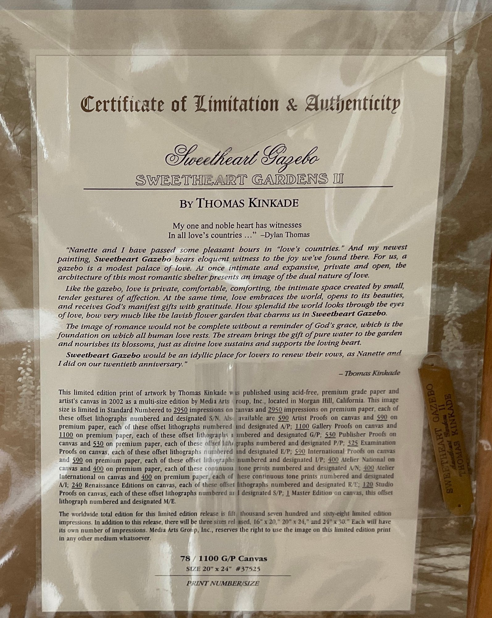 Has the Certificate of AUTHENTICITY very colorful.