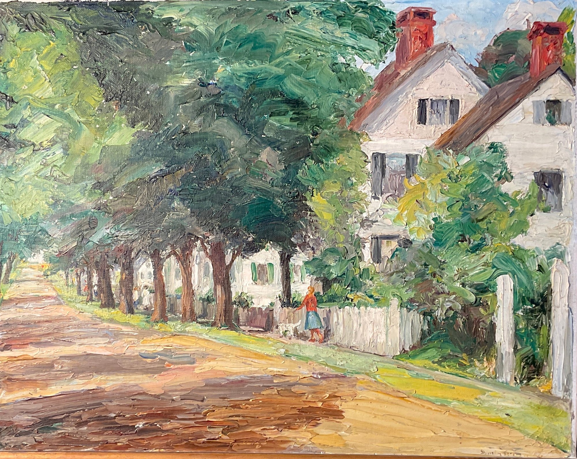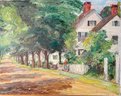 Signed on the back and dated 6/20/1949. Essex Main Street looking wet from the river. Nice impressionist style, vibrant colors. Historical value in Essex, Connecticut. Oil painting on art board.