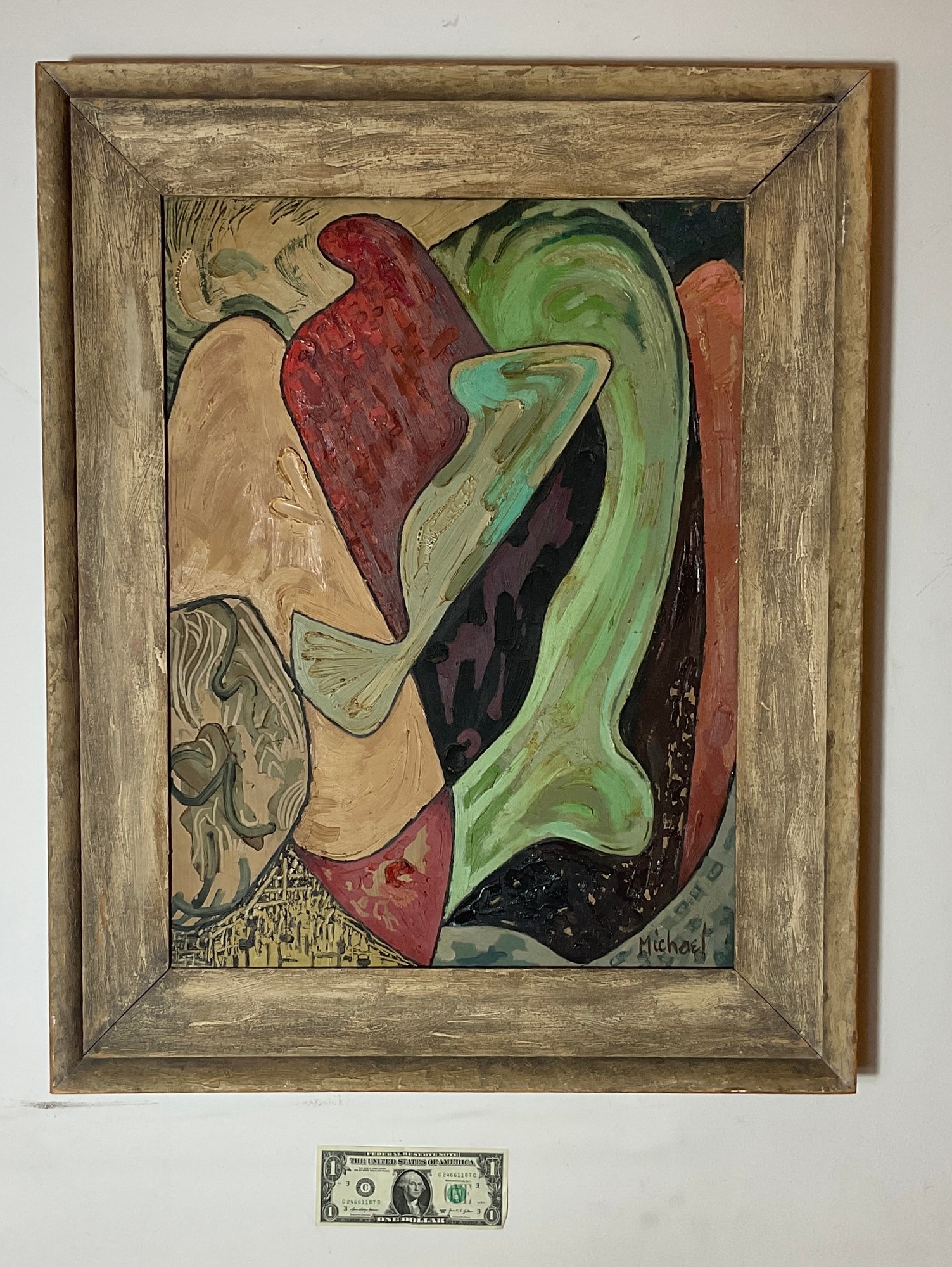 Here’s a nice colorful, abstract oil on canvas painting signed Michaels. ( Wallace Michaels)
