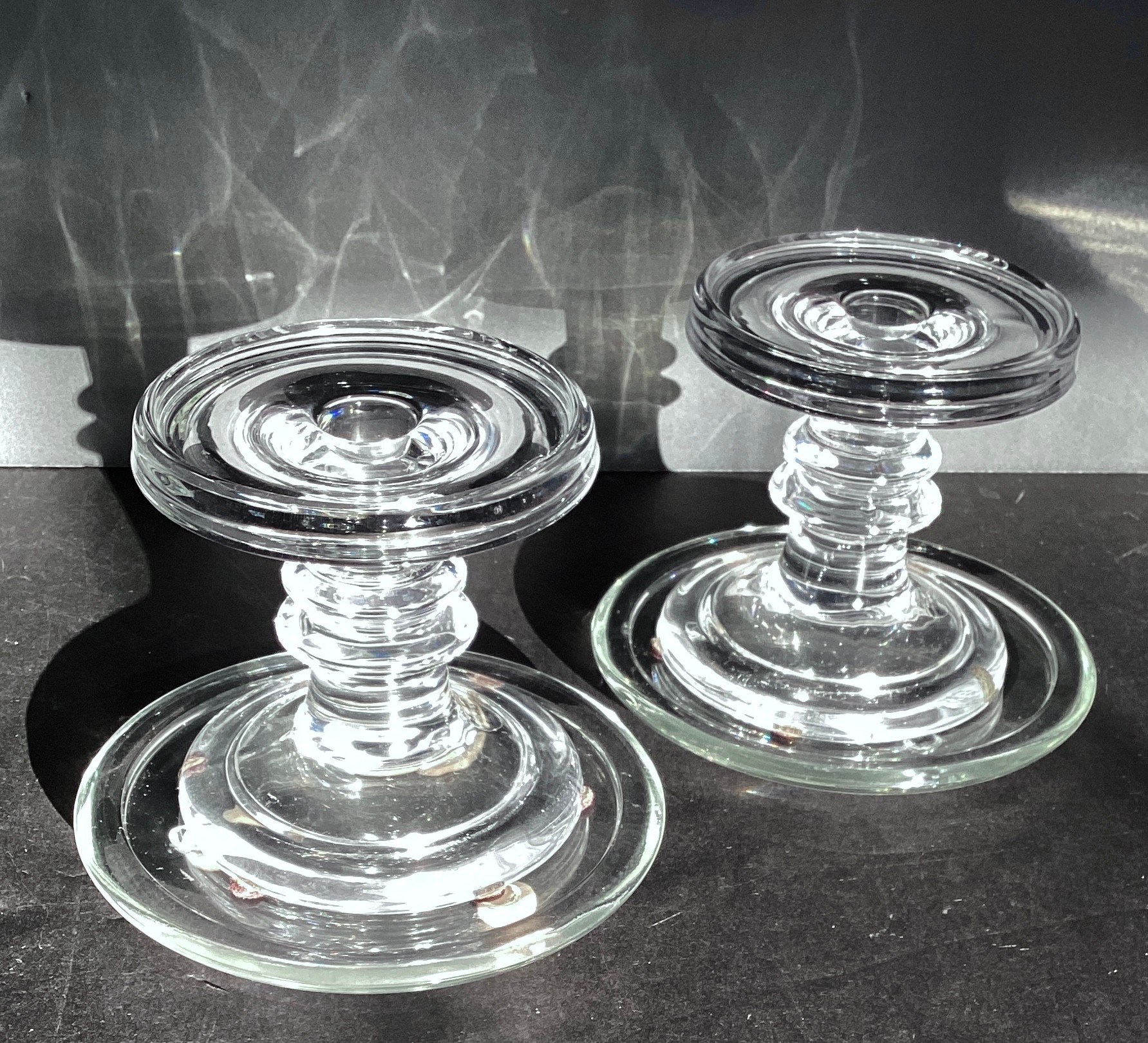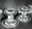 * two taper holders with companion round glass trays from Yankee Candle. Approximately 5” height and 3” diameter.