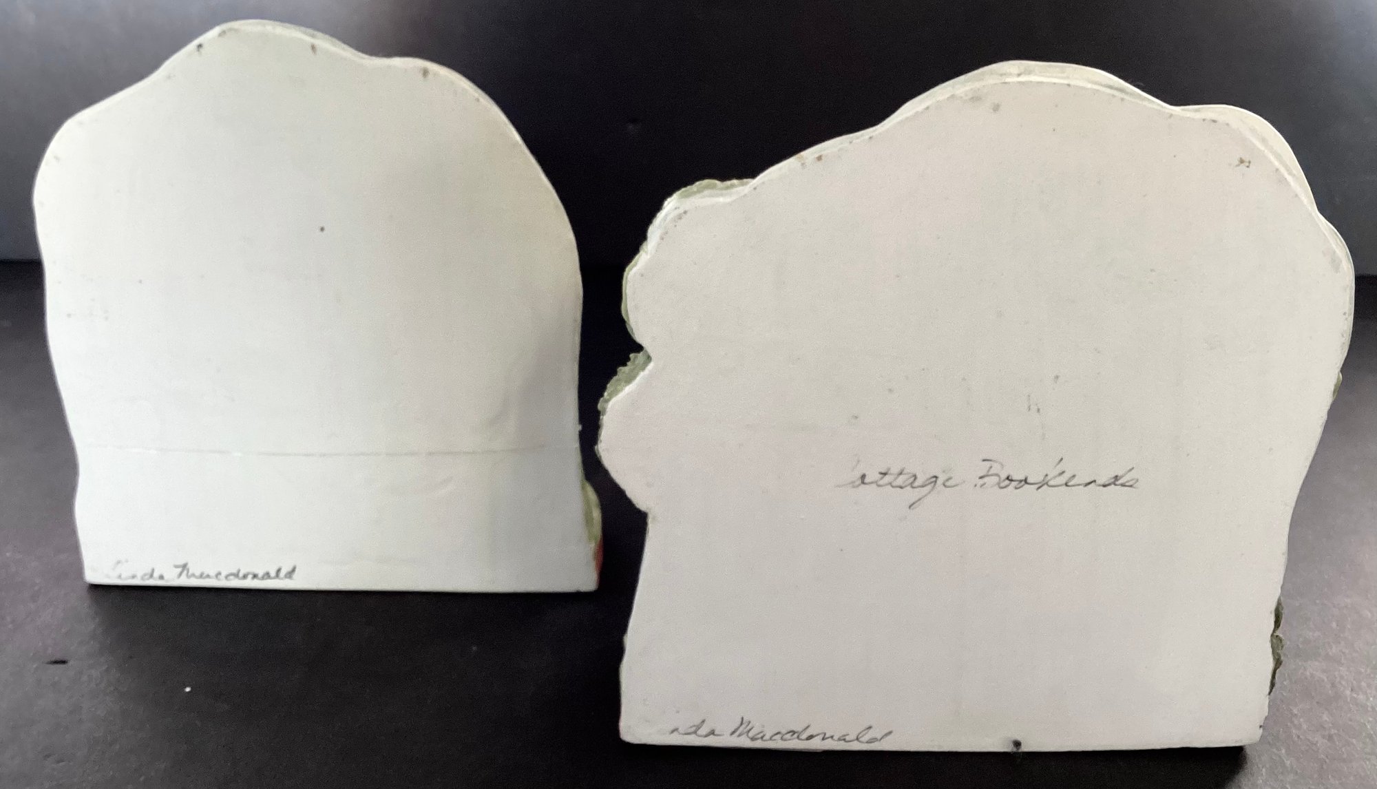 Here we have a great pair of ceramic bookends by artist Linda MacDonald.