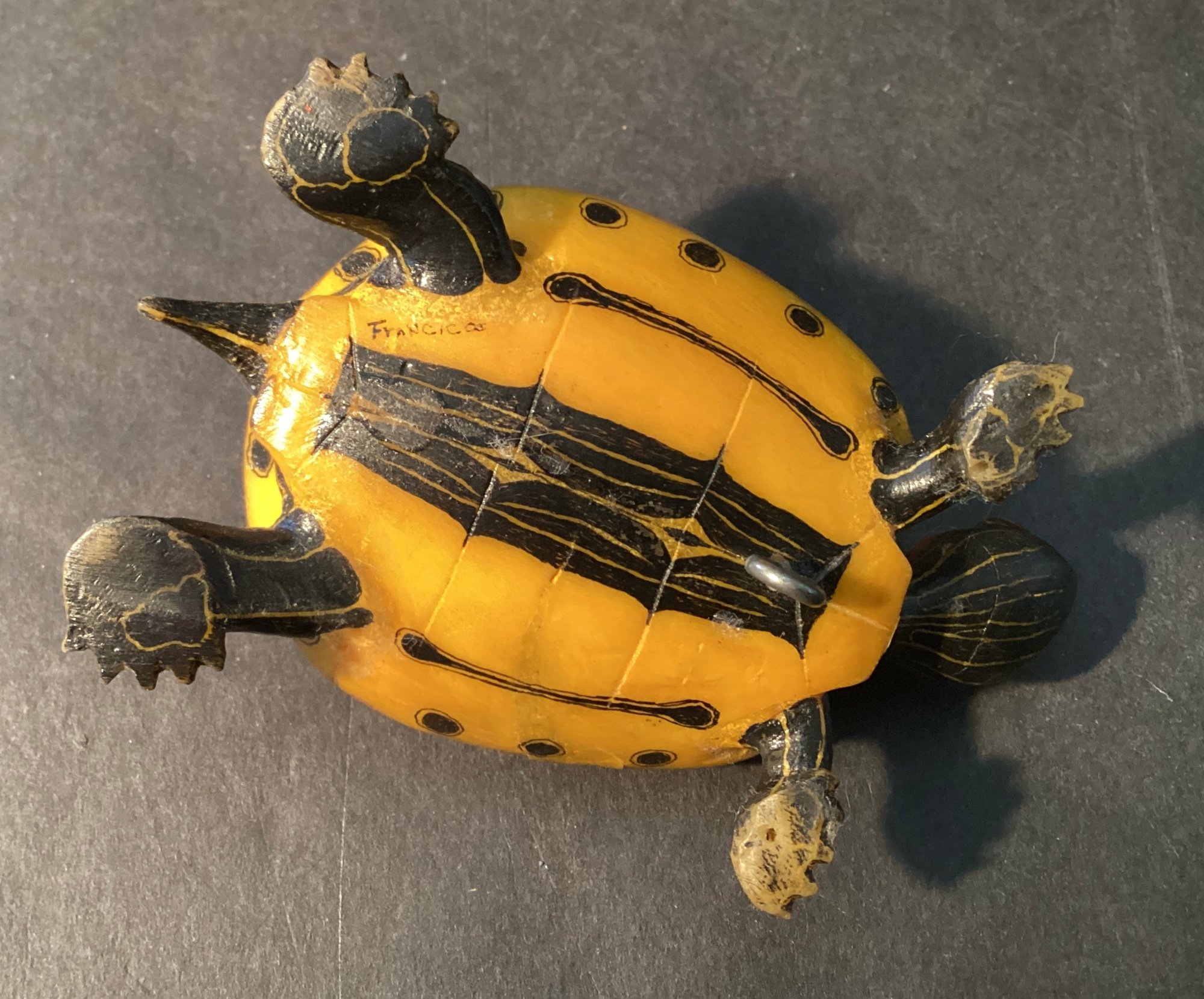Signed by ‘Francisco’ a Tagua nut tortoise that is carefully crafted and painted.