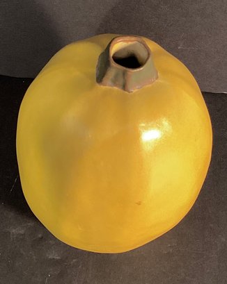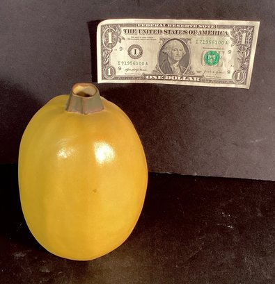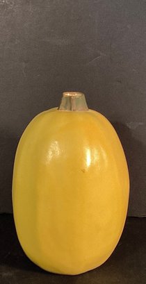 This ceramic squash has a 1” diameter opening at the top, measures approximately 8” in height, and 3” base diameter.