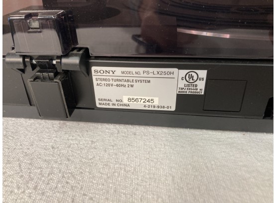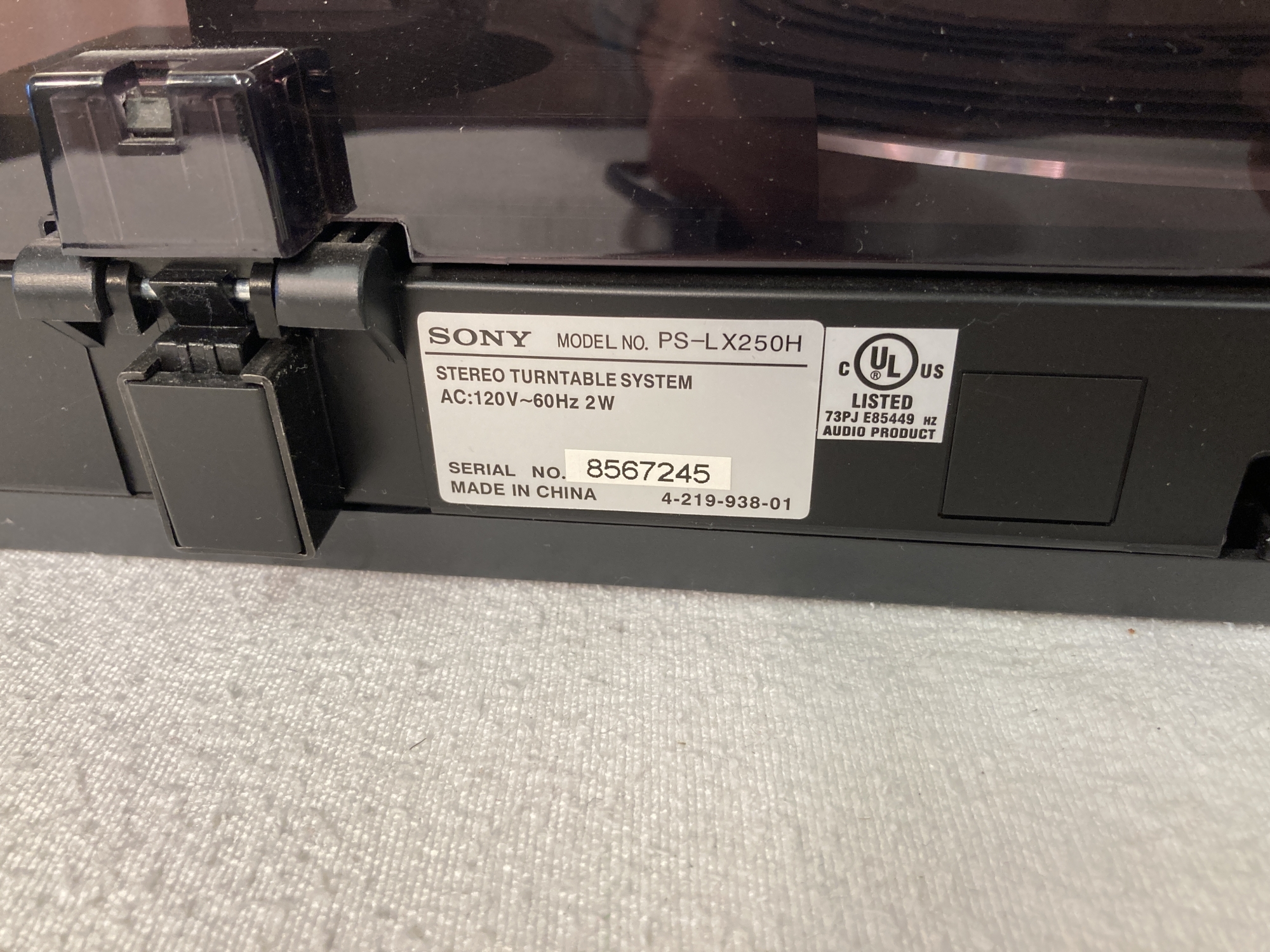 Selling a gently used Sony record player with fully automatic working parts. Comes with a needle(unsure how good it works). All other parts work fine as they should. Model PS-LX250H. Made in 2008.