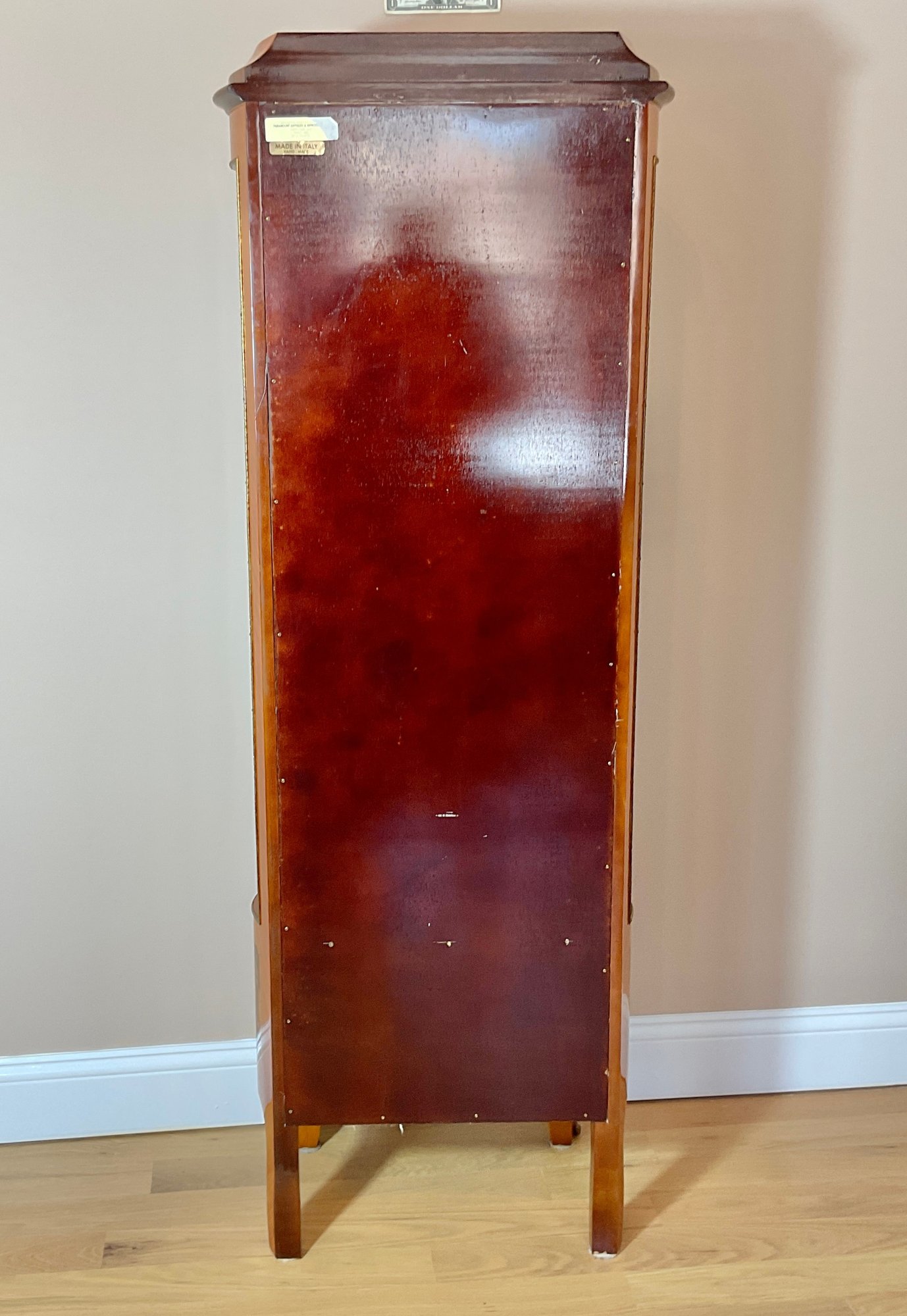 Handcrafted in Italy. 3 glass movable shelves, lock & key. Great Size