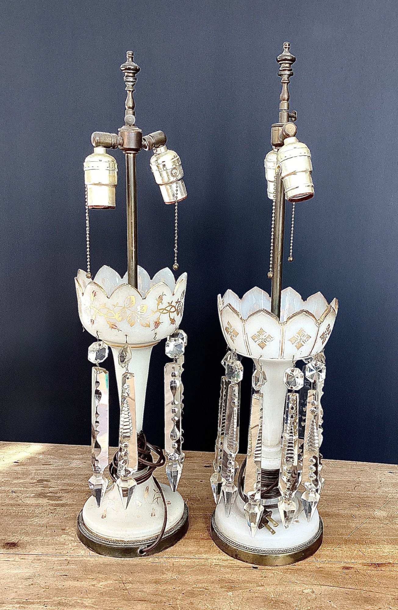 A pair of Victorian mantle lusters ELECTRIFIED