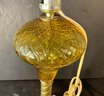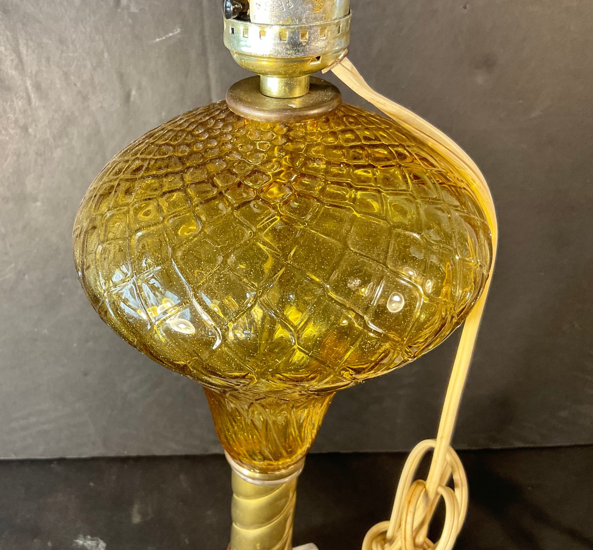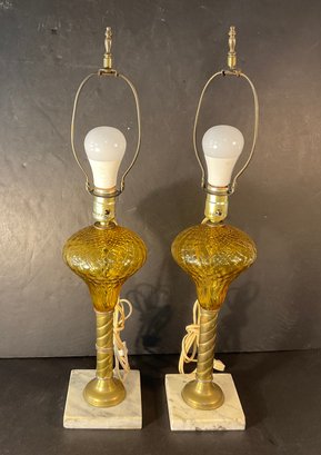 Wow! Here we have two very cool, very vintage amber, glass, and brass/marble lamps for your consideration.