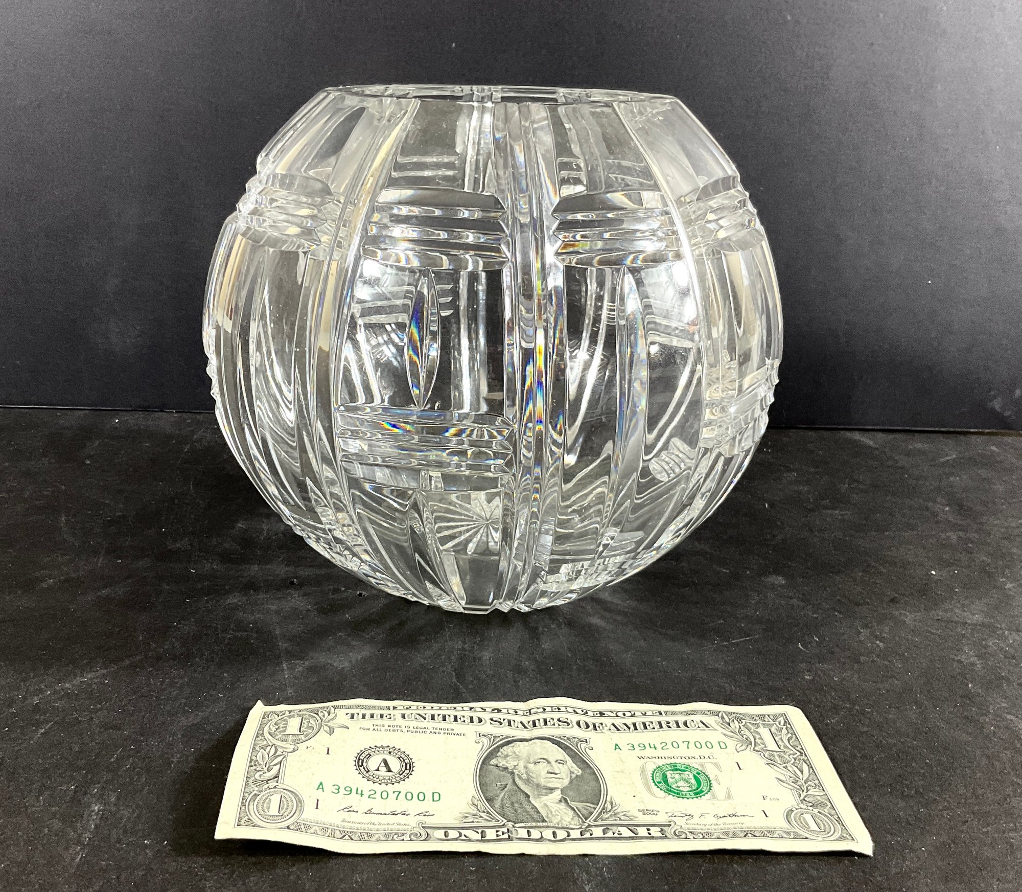 This vase is very heavy and extremely good condition no flaws and extremely good quality very heavy glass with good deep cutting.