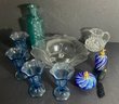* there are 2 art glass perfume bottles in a deep cerulean blue in a swirled pattern. The bottles Are approx 3.50” in diameter x 3.00” and the companion bottle is approximately 2.00” in diameter and 5.00” in height.