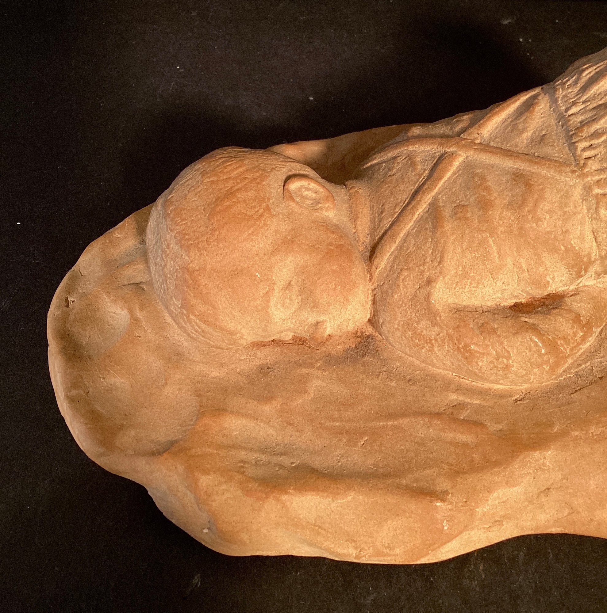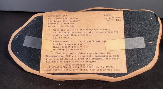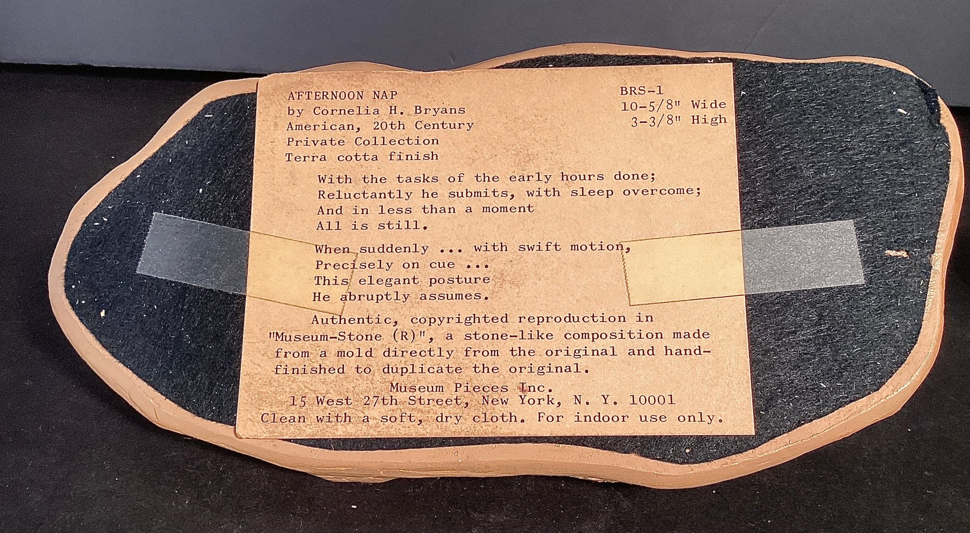 Here we have a Terra cotta piece by artist Cornelia H. Burns titled ‘Afternoon Nap’
