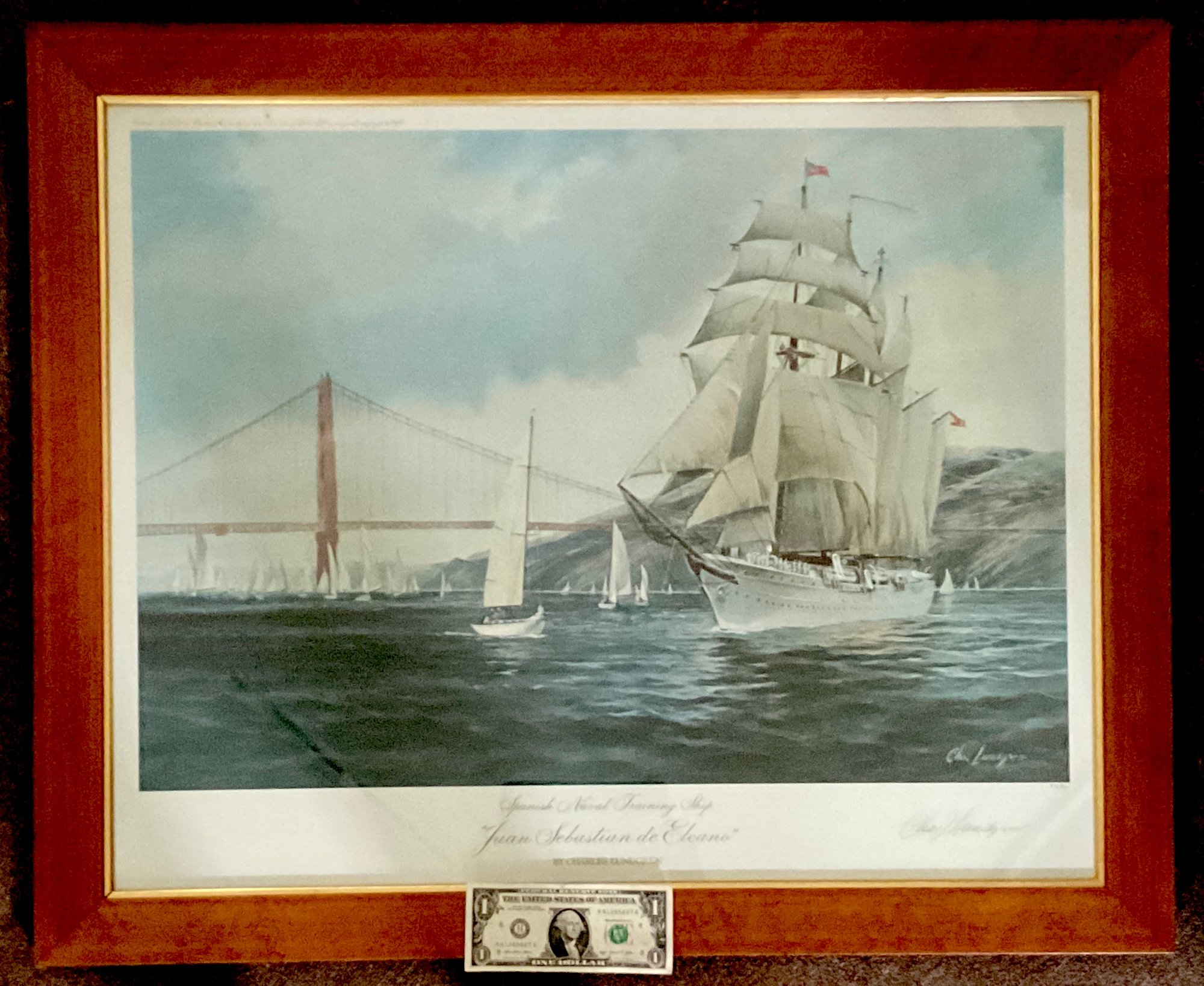We are selling an original colored limited edition lithograph by artist Charles Lundgren done in 1975 of the Spanish training ship “Juan Sebastian de Elcano” Pencil signed in the margin.