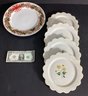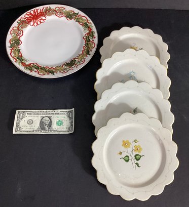 These were created in Portugal, and each has a different flower in the center of the plate. They are completed with a high gloss, clear glaze, and each has, an interesting scallop design around the edge of the dish. Each dish measures approximately 7.00” in diameter.