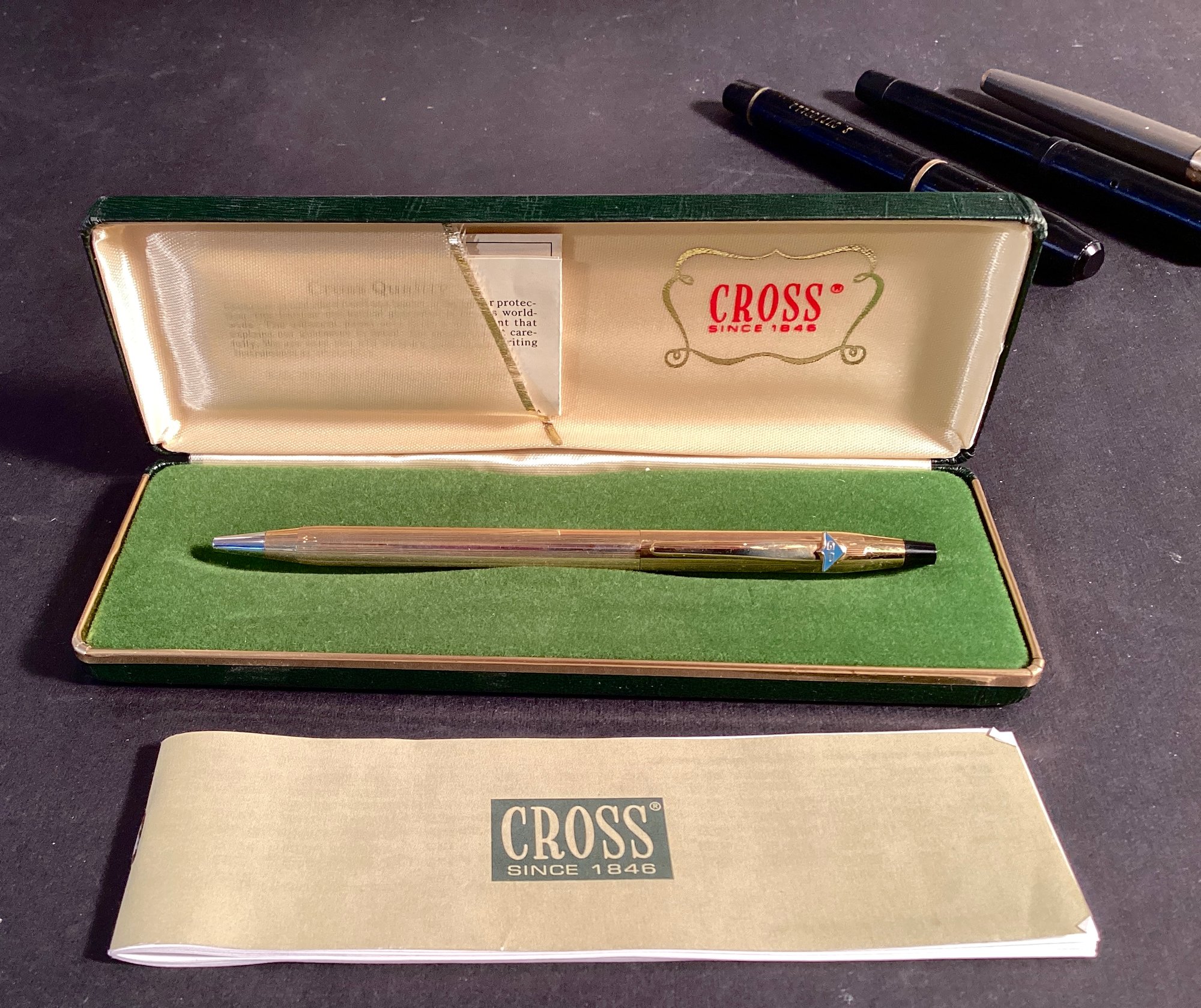 * A Cross gold filled pen in original box with instructions and a’perpetual guarantee’.