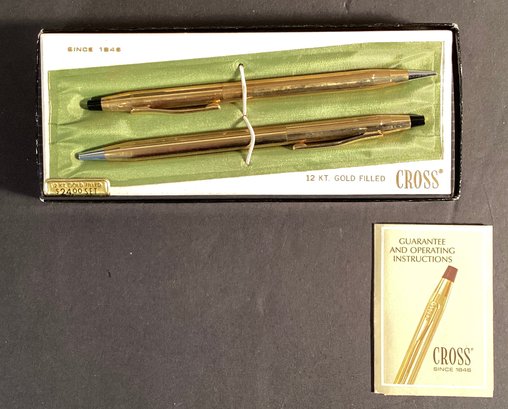 * A set of Cross 12 kt. Gold filled pen an pencil set which appear to have never Ben used. In original box with instructions.