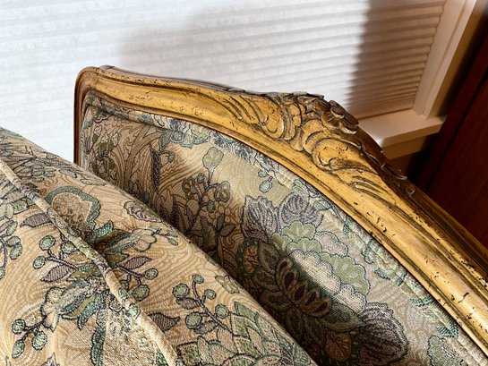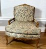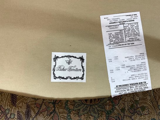 This fine chair is labeled BAKER and is all original paisley fabric. The frame is very nicely carved and the chair has generous proportions. Very comfortable.