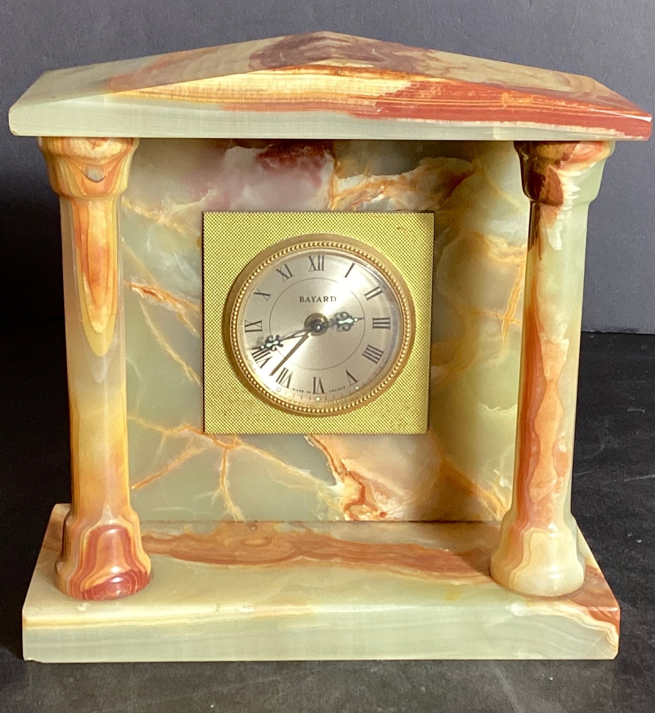 Vintage BAYARD solid agate desk or shelf clock. Not running. Substantial weight.
