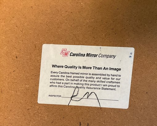 A great quality beveled glass mirror made by the Carolina Mirror Company North Carolina has been making mirrors for over 60 years and are known for the very best quality. The label on the back shows the age circa 1940’s
