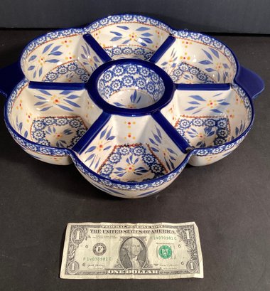 * the center dipping dish measure4” in diameter, and the server itself measure 14”.